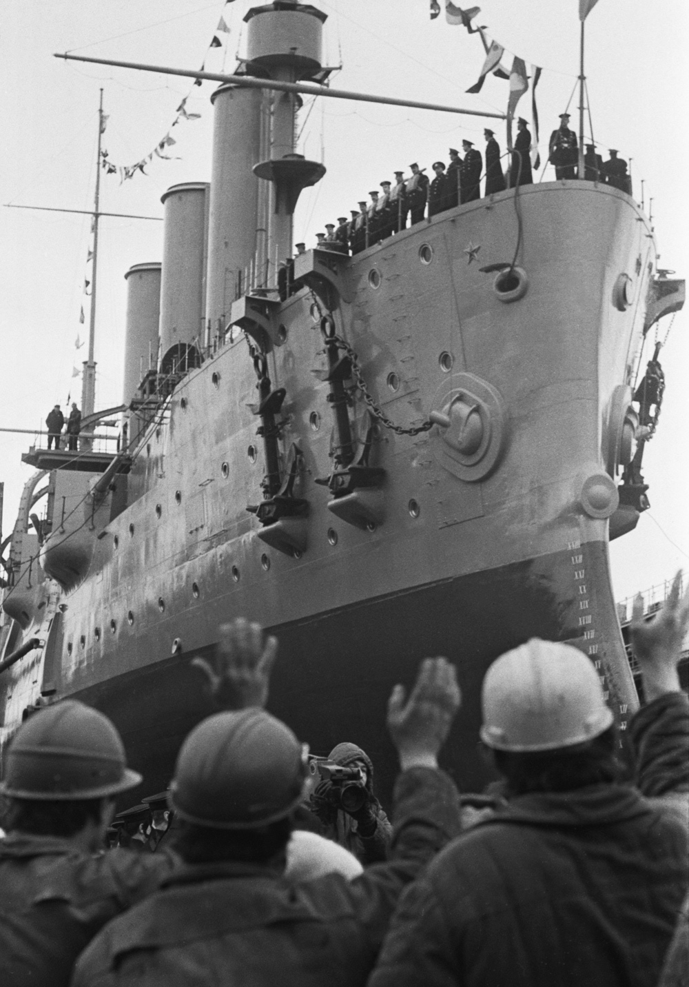 ТАССС началом Великой Отечественной войны с «Авроры» списали курсантов, а сам корабль, находившийся в Ораниенбауме, включили в систему противовоздушной обороны Кронштадта.