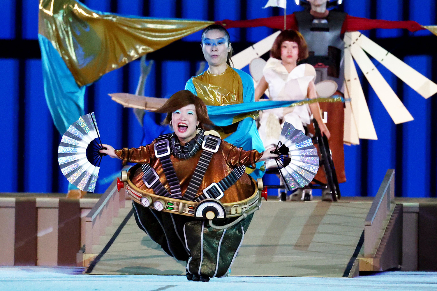 Исполнители во время церемонии открытия игр.