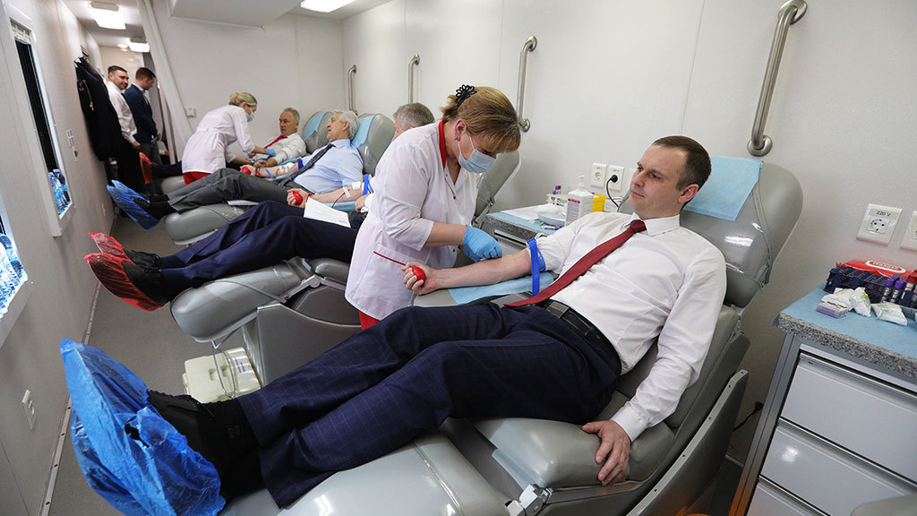 Депутаты Госдумы сдали кровь на Охотном Ряду