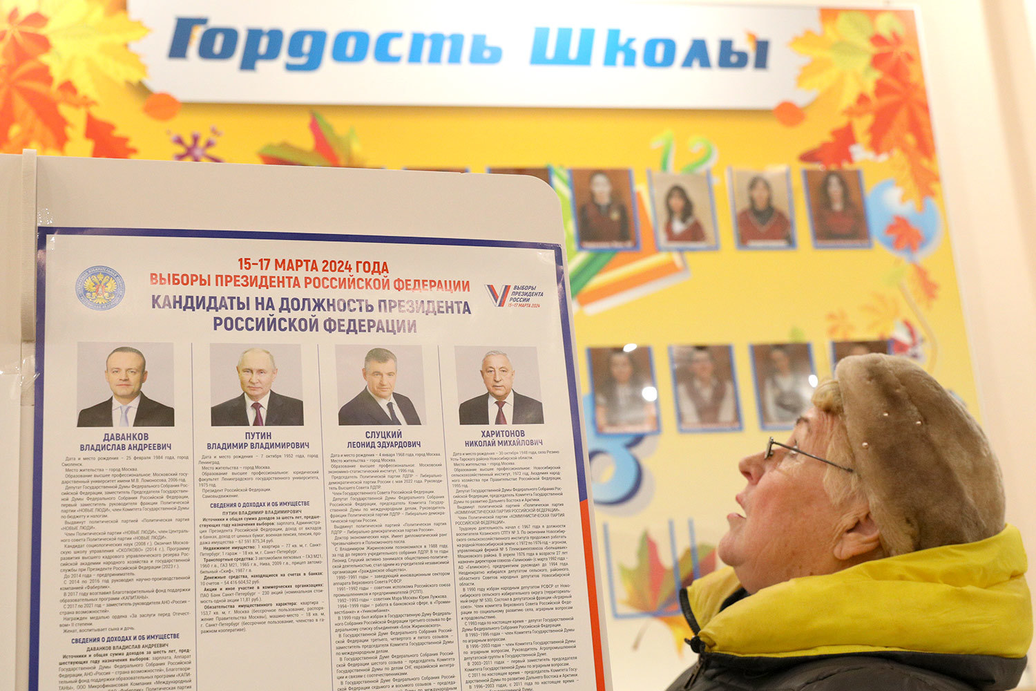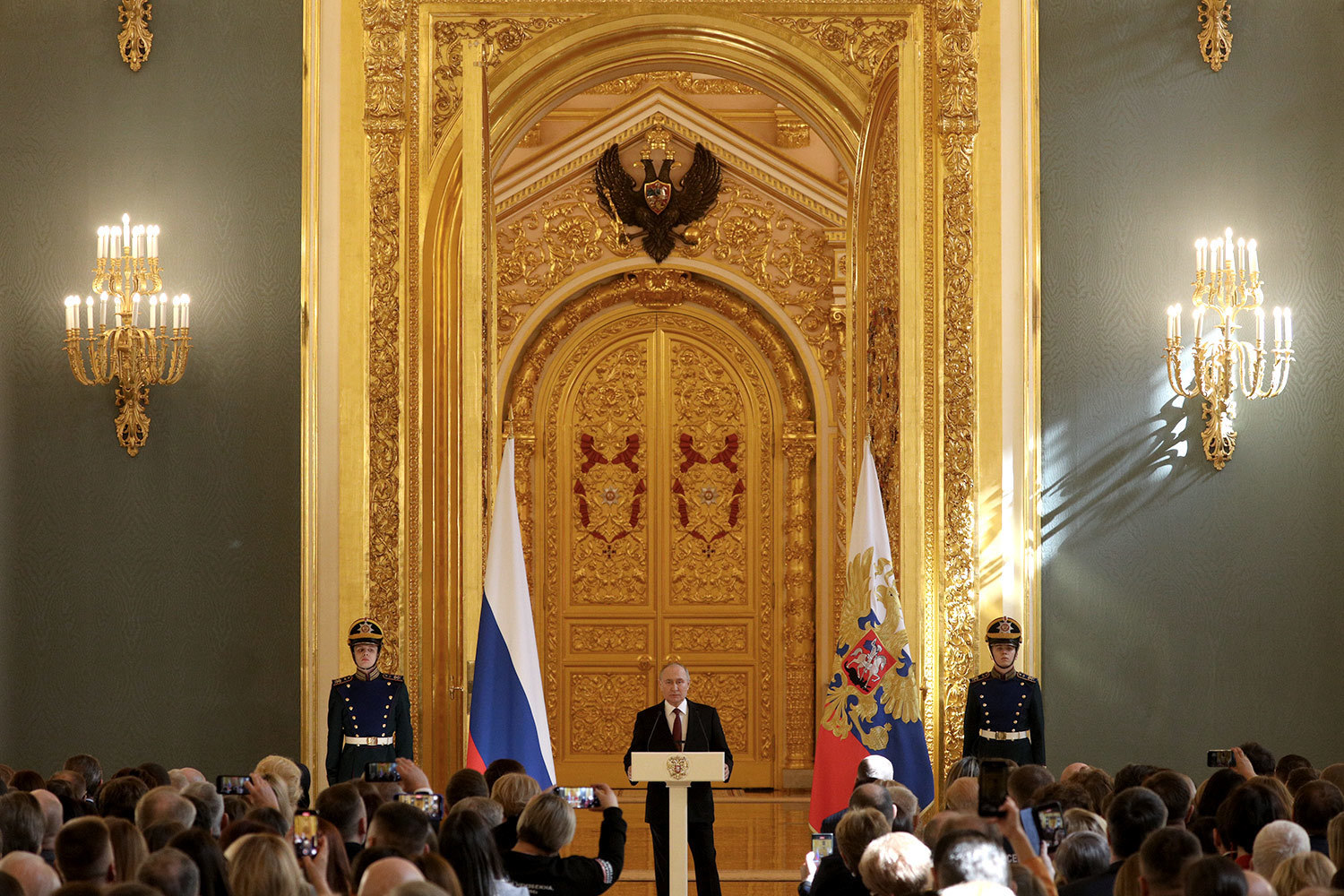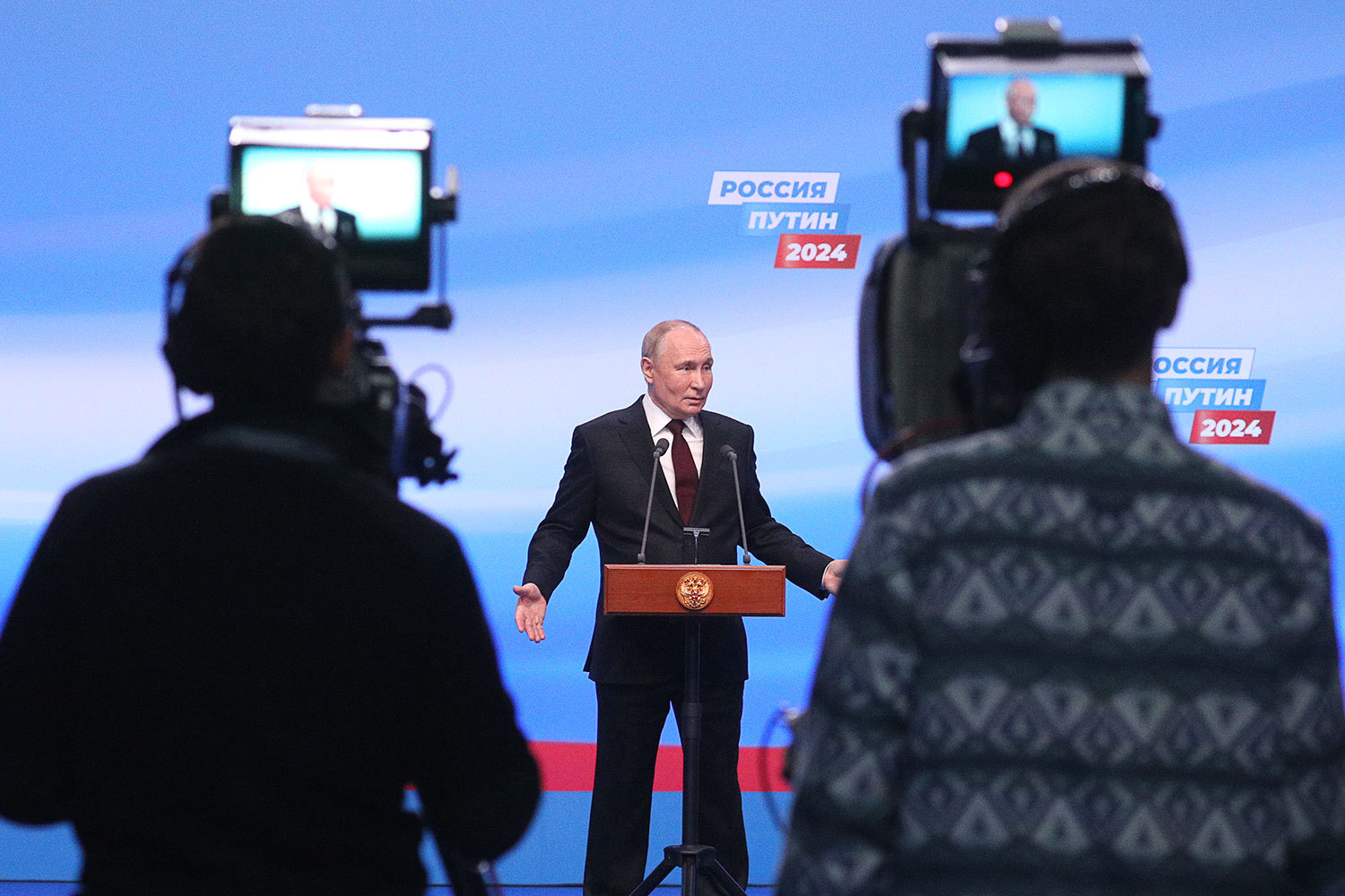 17 марта 2024 г. ПрезидентВладимир Путин во время выступления в своем избирательном штабе в Гостином дворе.