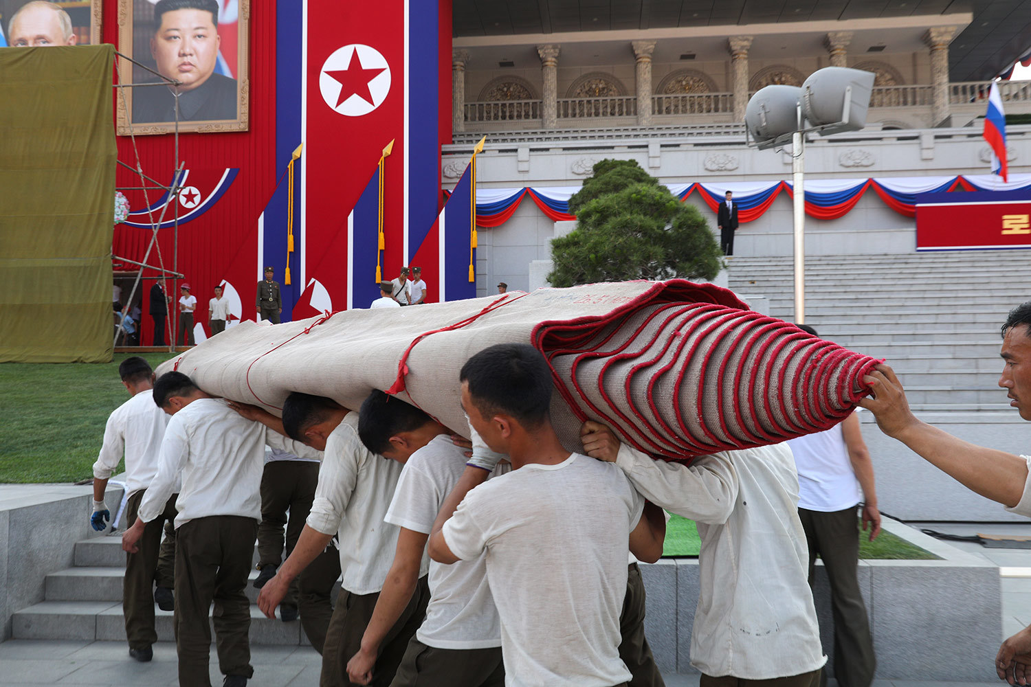 Подготовка к прибытию Владимира Путина, Пхеньян, Северная Корея.