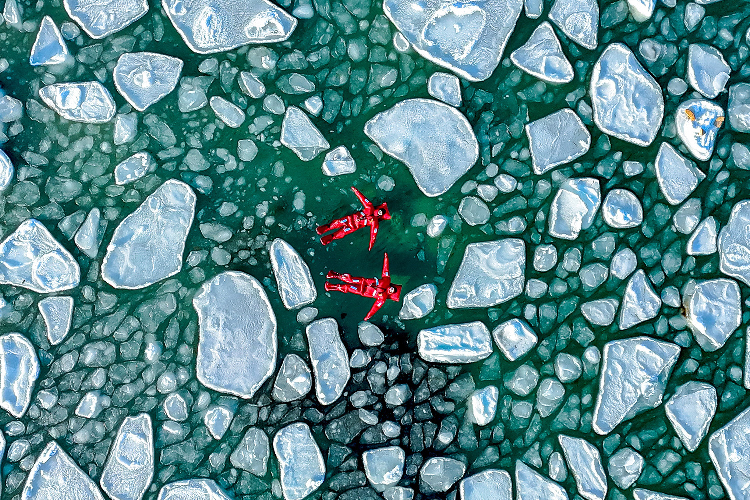 Купание во льдах акватории бухты Ахлестышева, Владивосток.