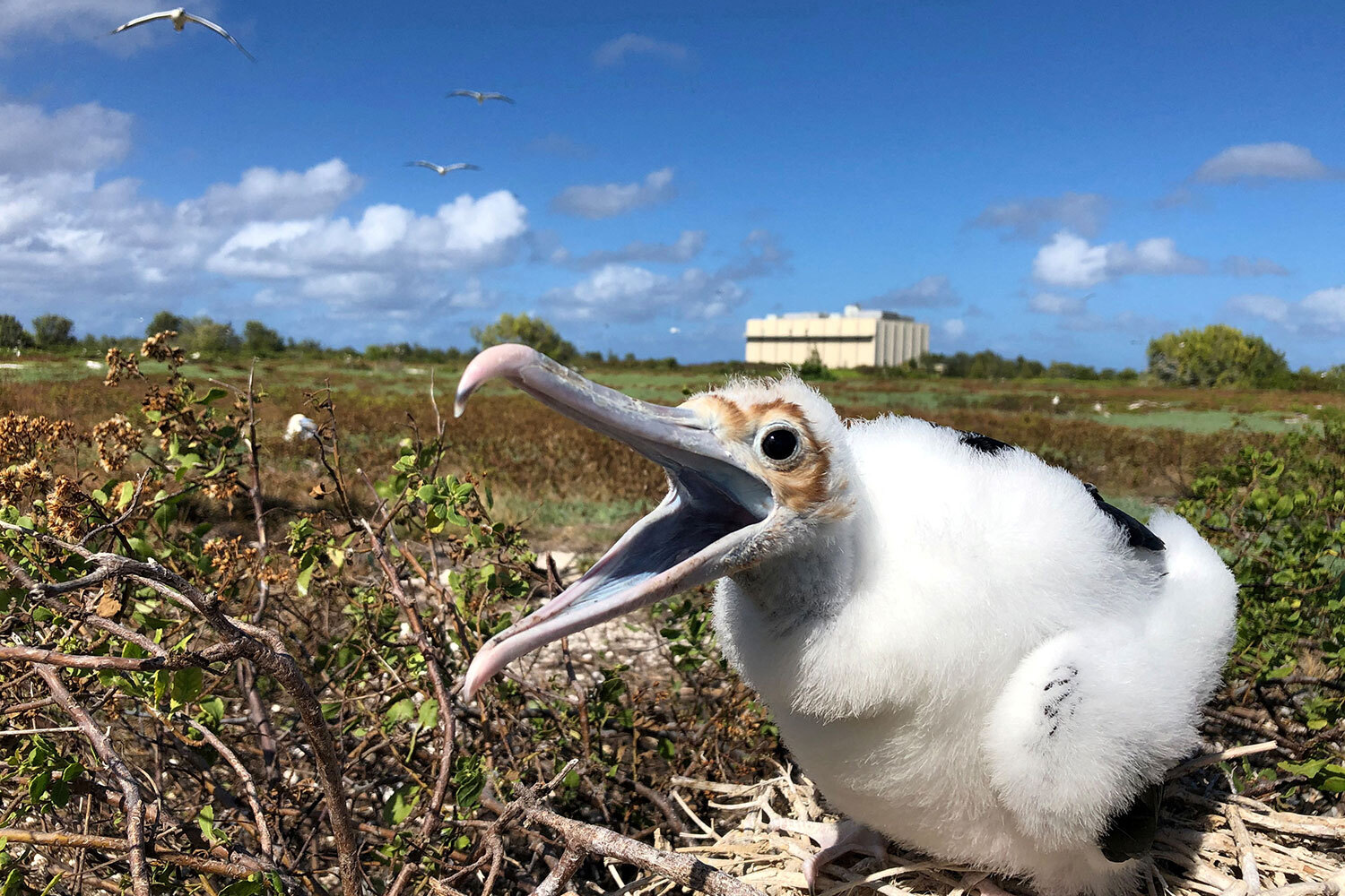2 апреля 2025 г. Птенец большого фрегата в гнезде, остров Джонстон.