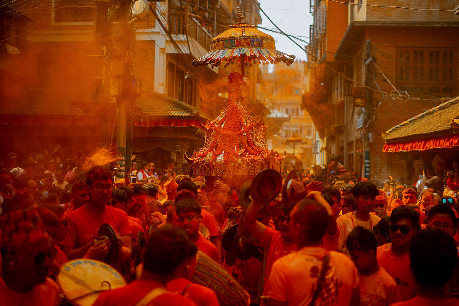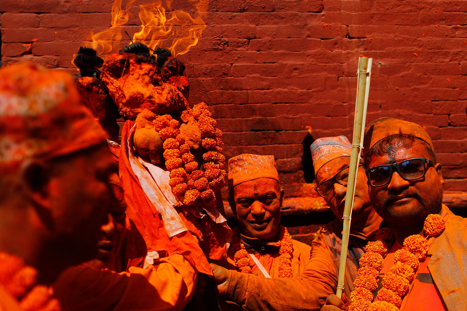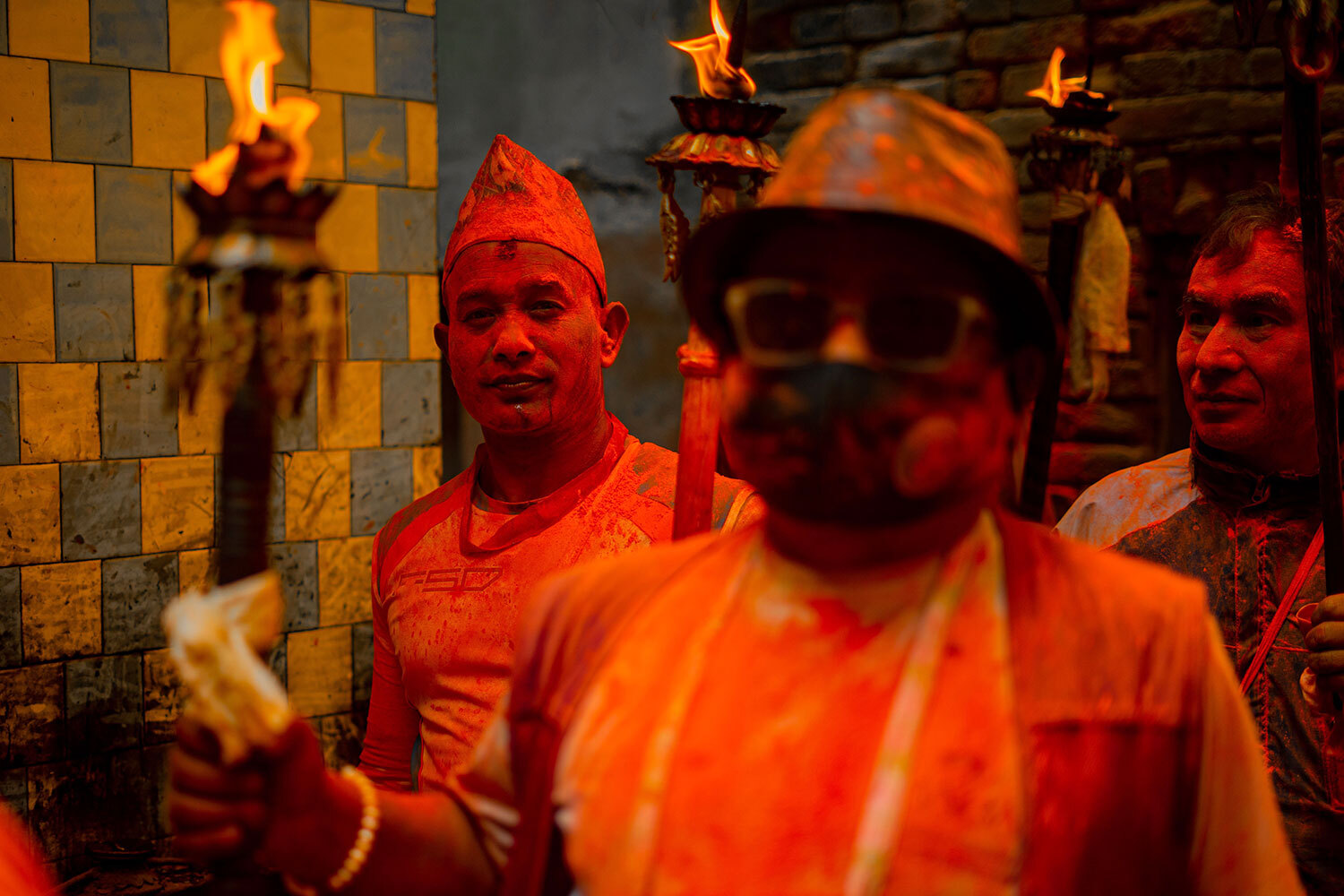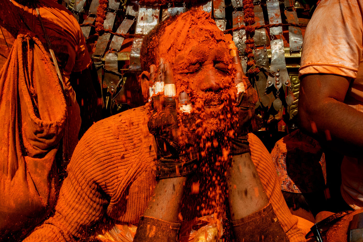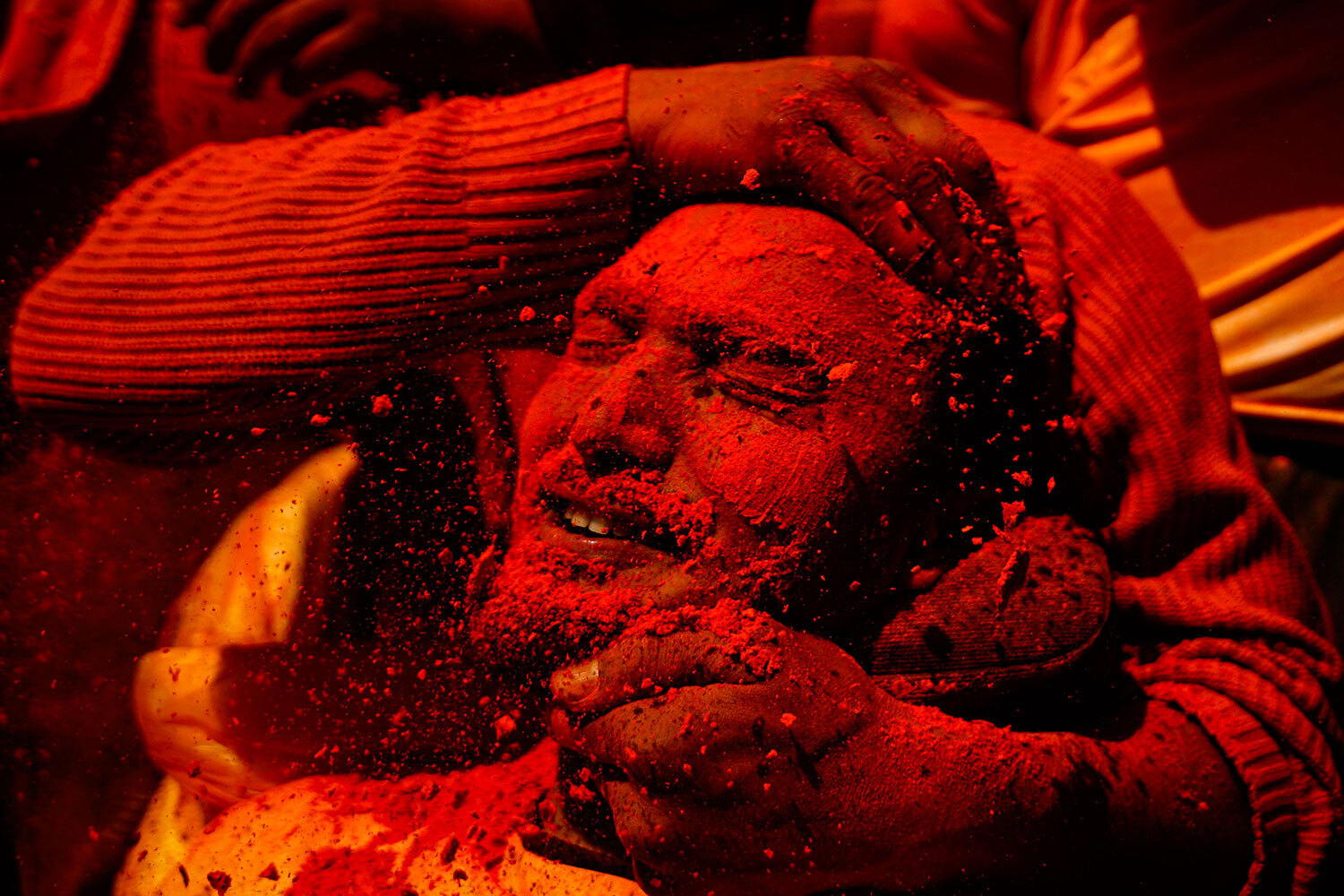 15 апреля в Непале проходит традиционный фестиваль «Синдур Джатра». Верующие отмечают приход весны, осыпая друг друга красным порошком из киновари.