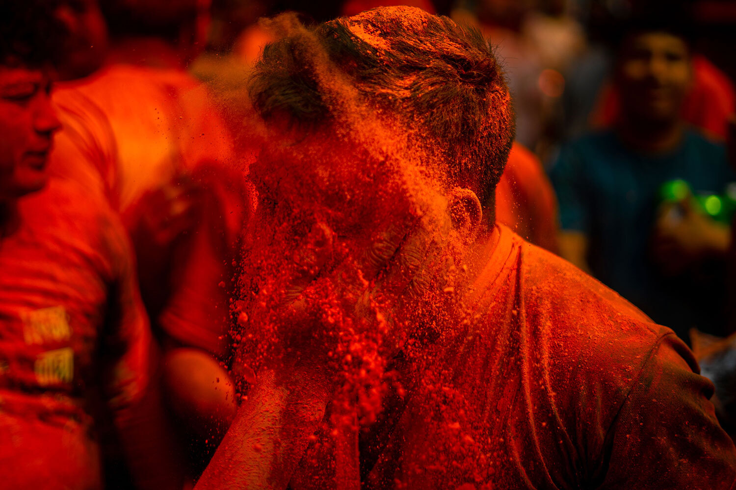 Некоторые непальцы и туристы надевают очки и маски, чтобы защитить себя во время красочного фестиваля. Но это, скорее, исключение из правил.