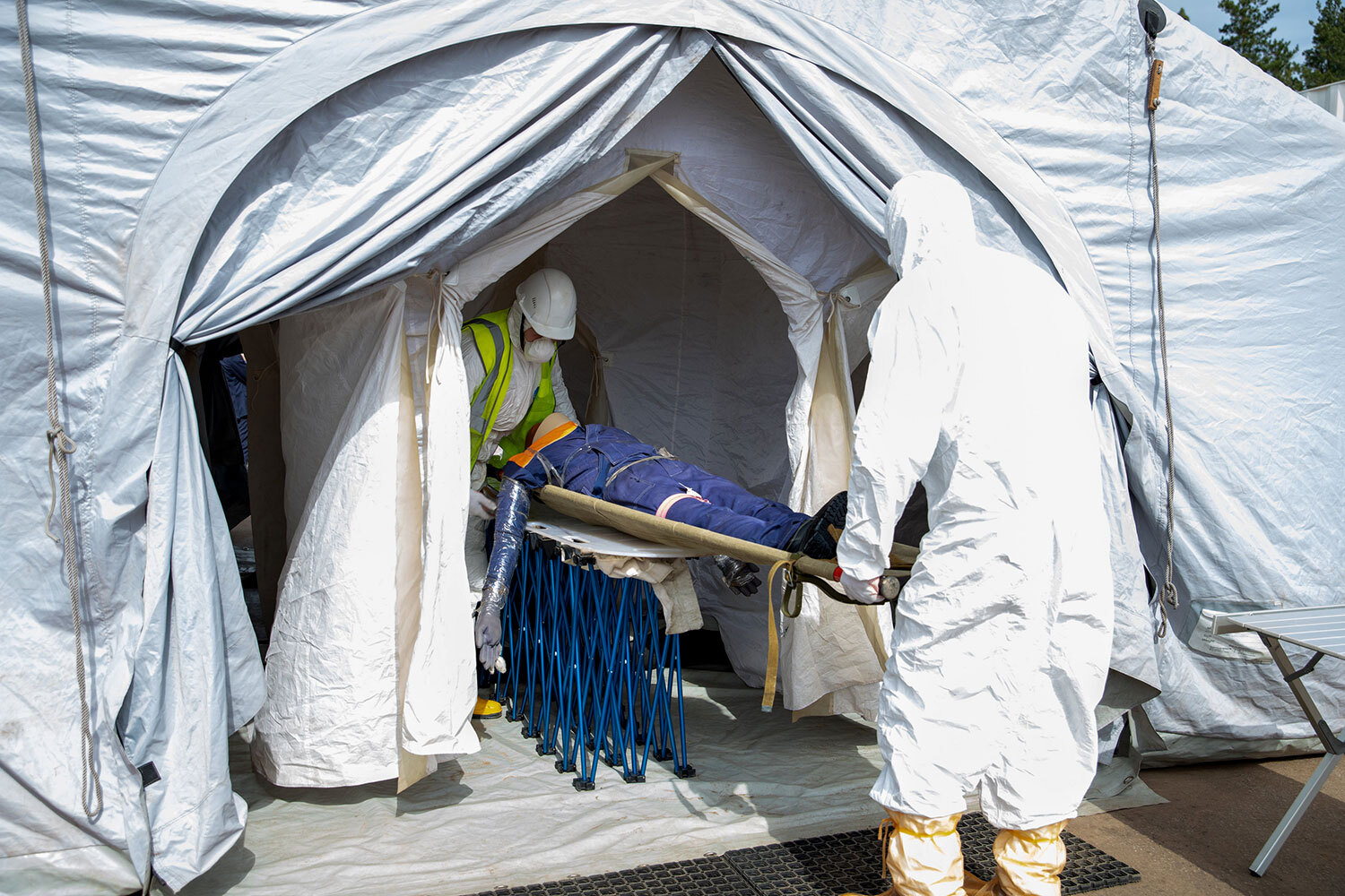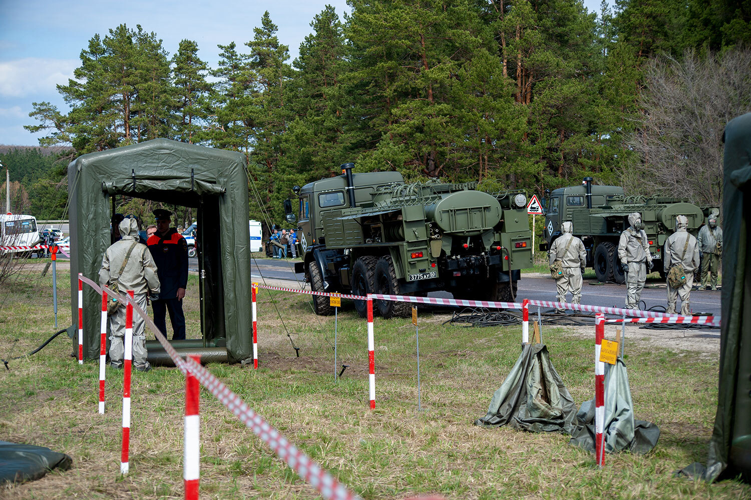 Сергей Морозов / Управление коммуникаций Нововоронежской АЭССпасатели отработали методы аварийной эвакуации. Согласно тренировочным пресс-релизам, гражданам в радиусе до 7,3 км от атомной станции рекомендовали не покидать укрытий, детям в радиусе 4,5 км – принимать йод.