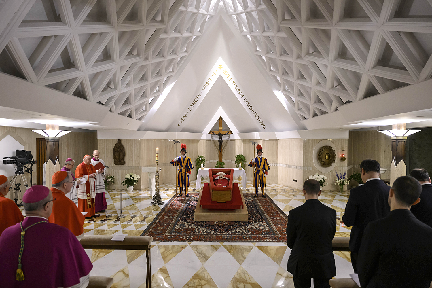 Vatican Media / AP22 апреля в Ватикане началось прощание с папой римским Франциском. В церемонии, проходящей в капелле его резиденции – доме «Святой Марфы», участвуют представители католической церкви. 23 апреля гроб с телом понтифика будет выставлен в соборе Святого Петра, где в течение трех дней проститься с главой Святого престола смогут все желающие. Похороны состоятся в субботу, 26 апреля. Одновременно верующие собираются на траурные мероприятия по всему миру.