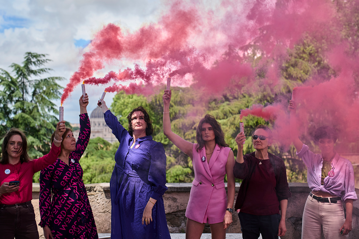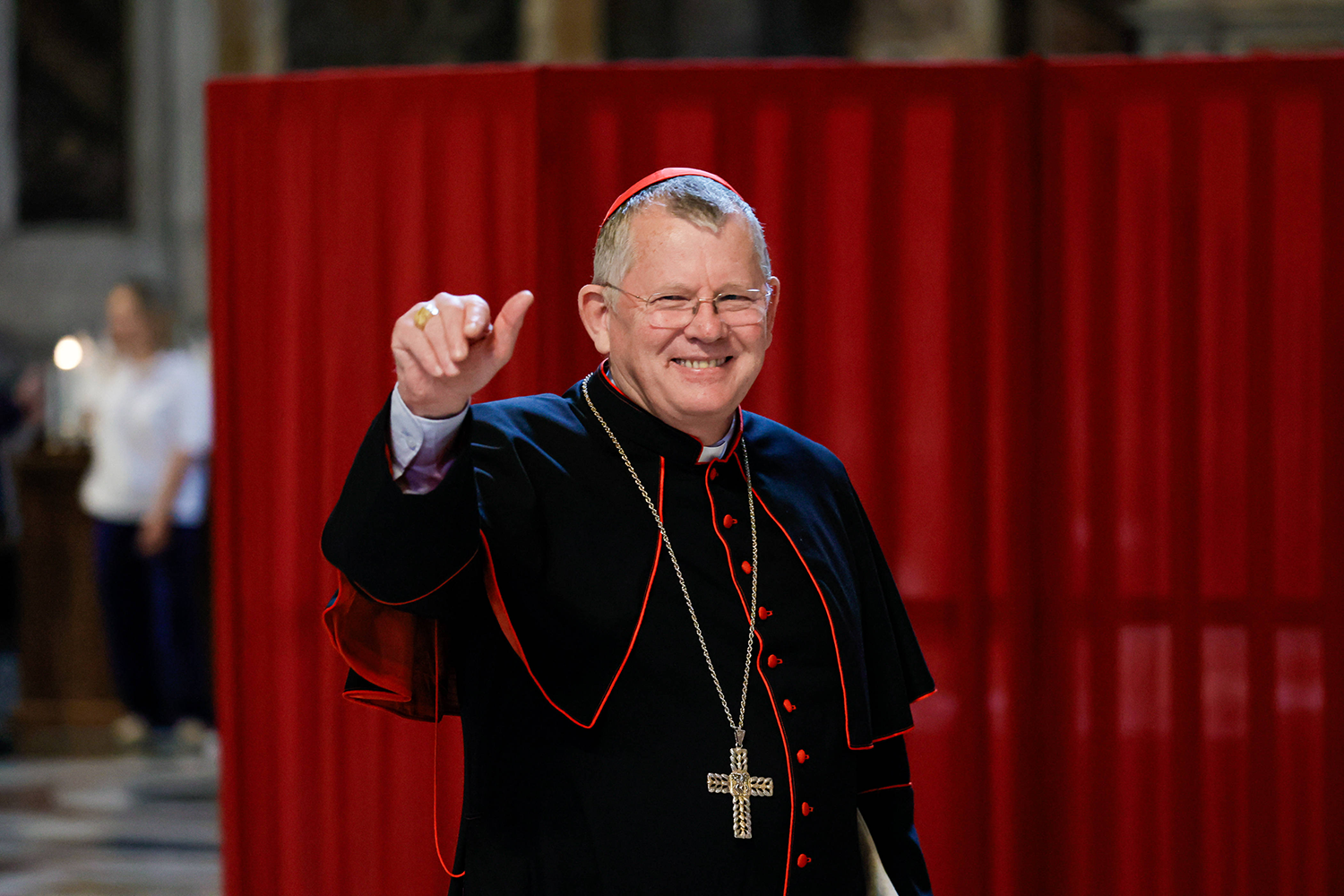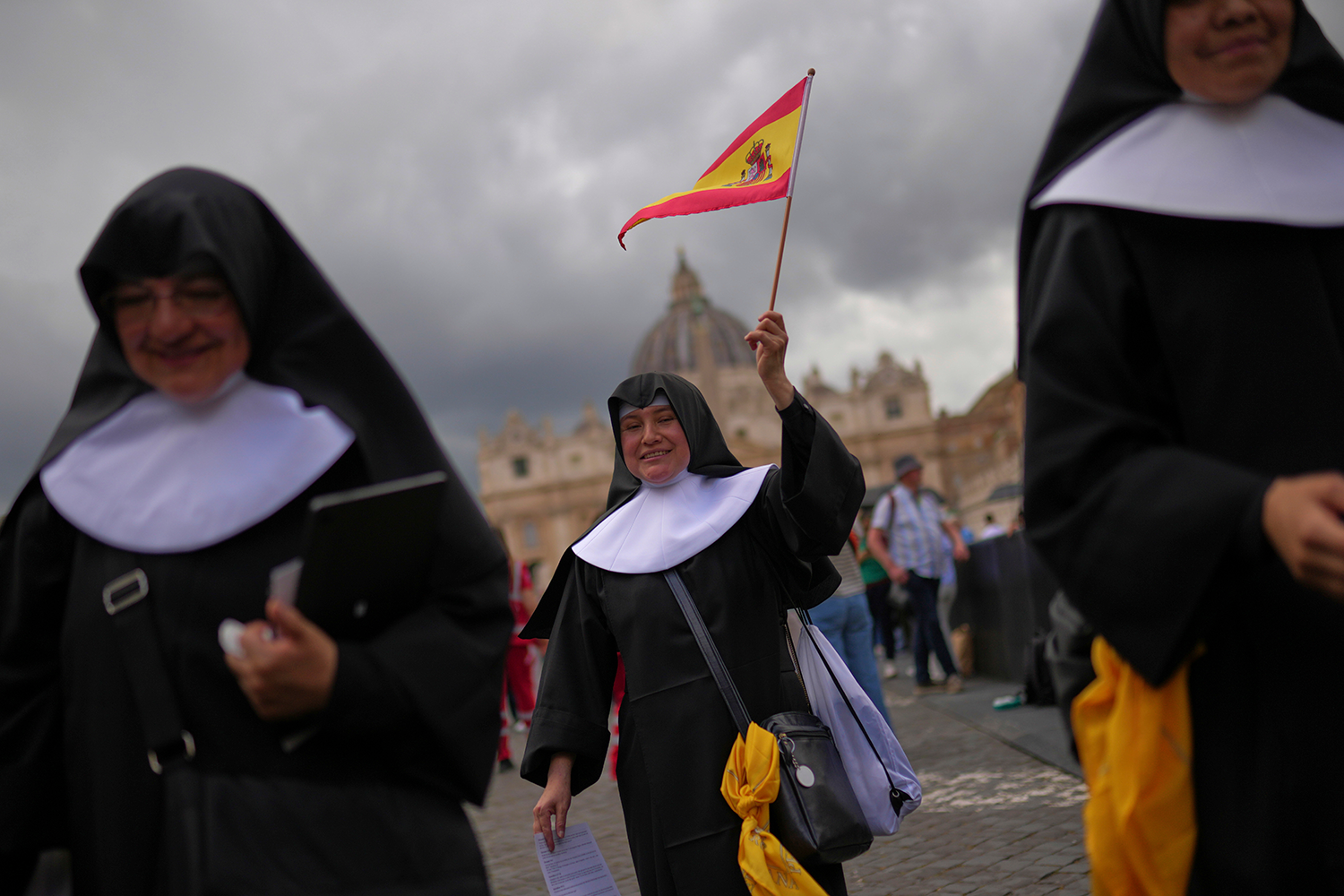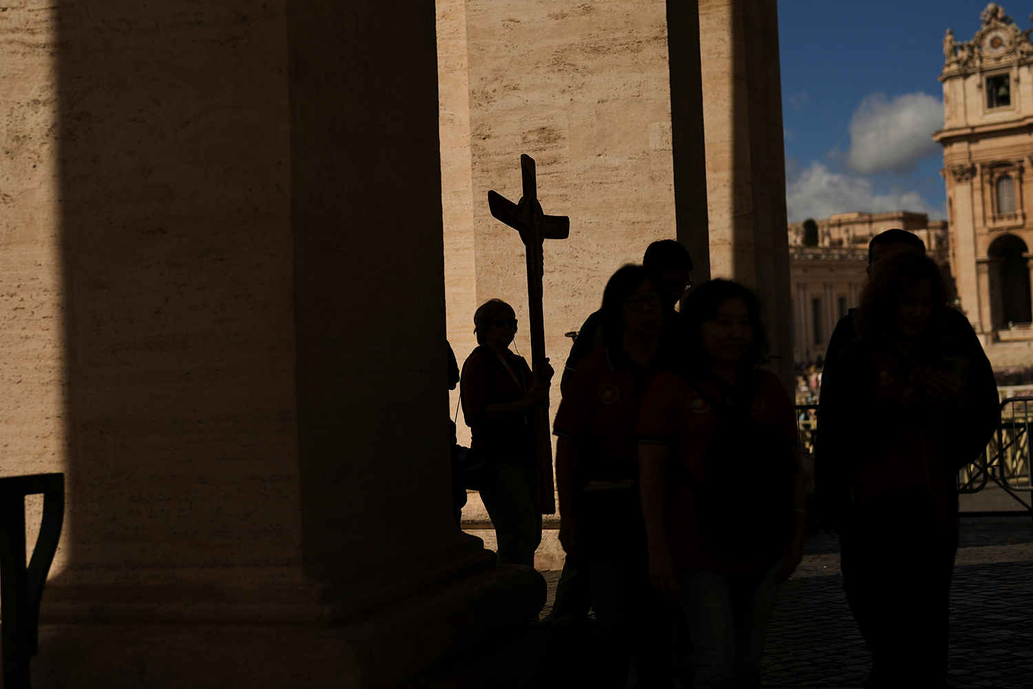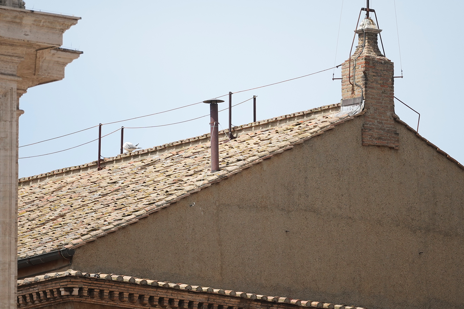Guglielmo Mangiapane / ReutersМонсе Альварадо, президент и главный операционный директор EWTN News – американской медиакомпании, освещающей новости для католиков по всему миру, Мэтью Бансон, вице-президент и редакционный директор, а также монсеньор Роджер Лэндри молятся во время прямого эфира рядом с площадью Святого Петра.