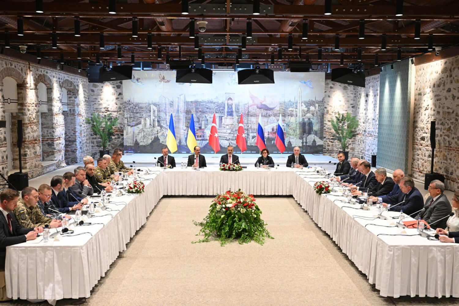 16 мая 2025 г. Делегации России и Украины во время переговоров в рабочем офисе президента Турции Долмабахче.