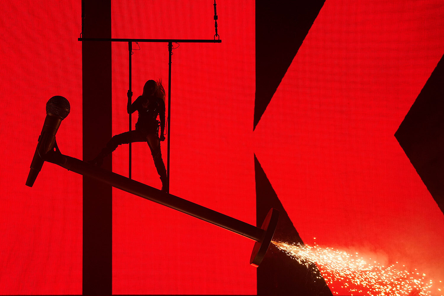 14 мая 2025 г. Эрика Викман из Финляндии исполняет песню ICH KOMME на генеральной репетиции второго полуфинала «Евровидения» в Базеле, Швейцария.