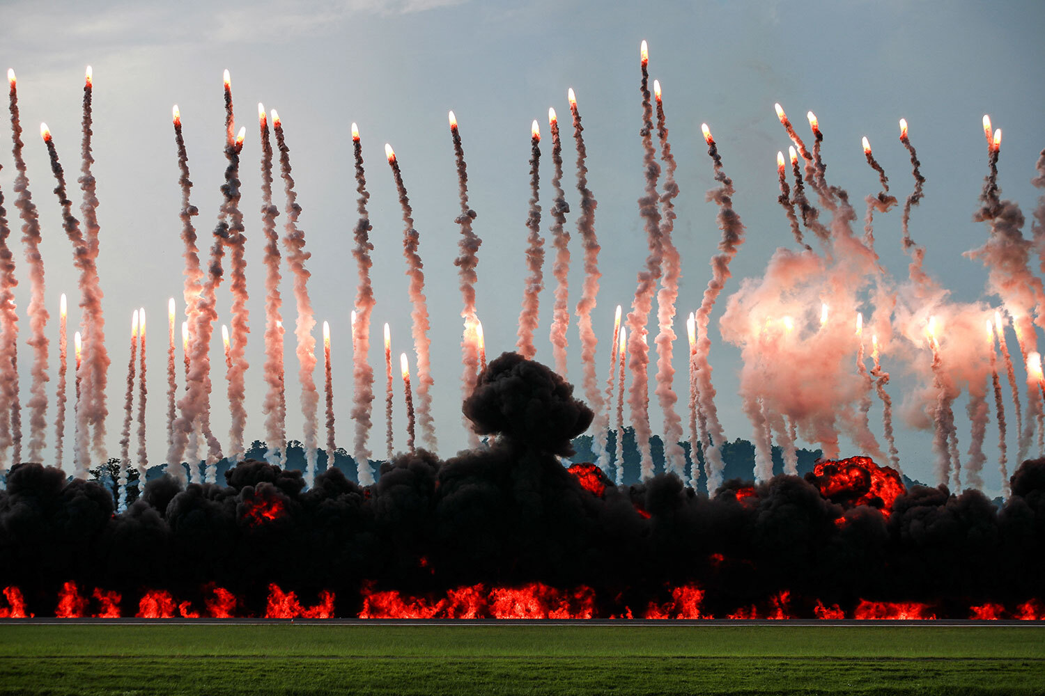 20 мая 2025 г. Имитация бомбардировки на церемонии открытия 17-й Международной выставки морской и аэрокосмической техники, Лангкави, Малайзия.