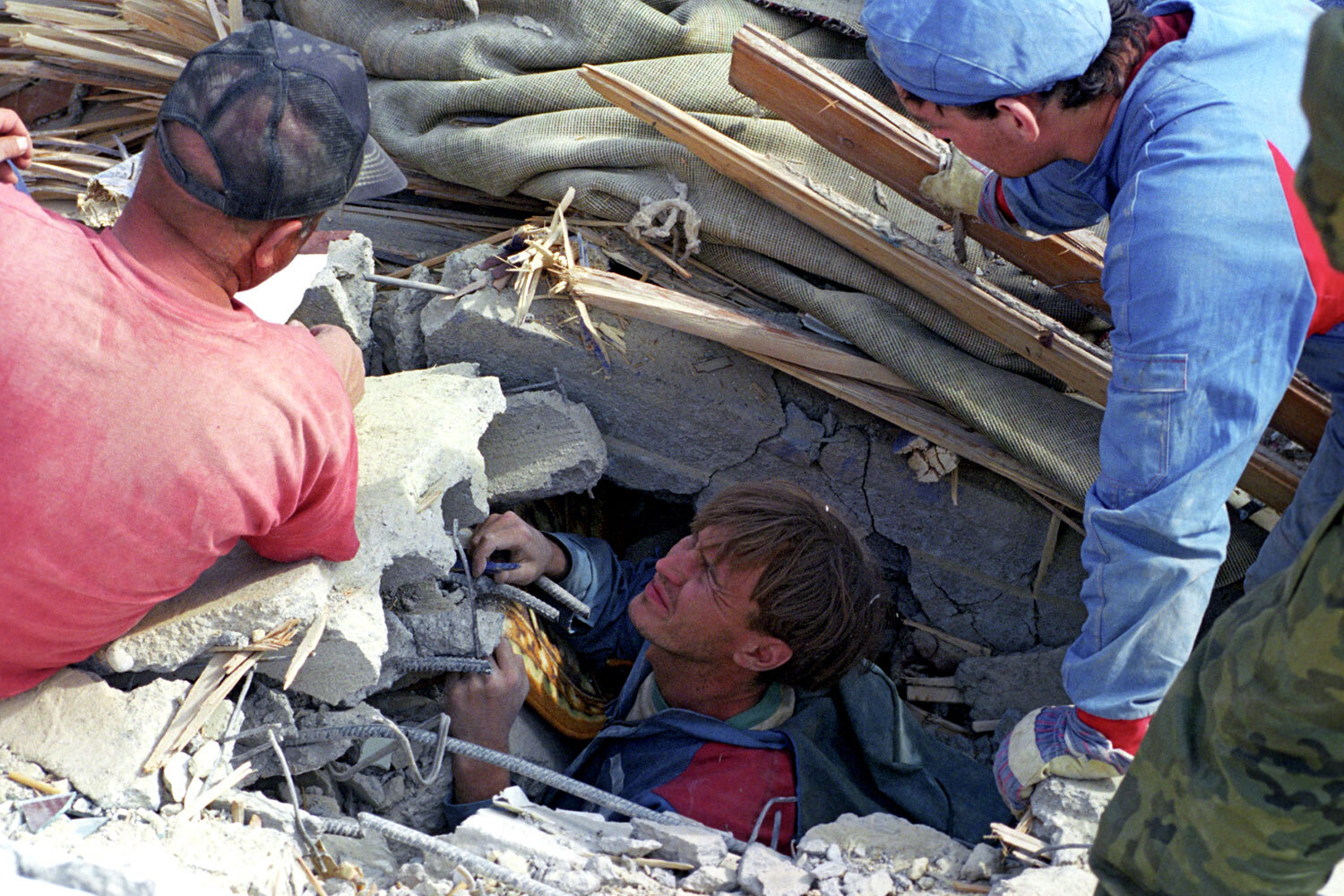 Игорь Михалев / РИА НовостиВ результате происшествия рухнули 17 жилых домов, поликлиника, школа, столовая, пекарня, котельная и административные здания «Востокнефти». Нефтегорские пятиэтажки строили в 1960-е по типовым проектам 1-447С из расчета, что магнитуда землетрясения не превысит шести. В мае 1995 г. подземные толчки вышли за пределы этой нагрузки. Очевидцы рассказывают, что из жилых домов выстояли только одна панелька и сталинка, построенная еще в 1930-е.