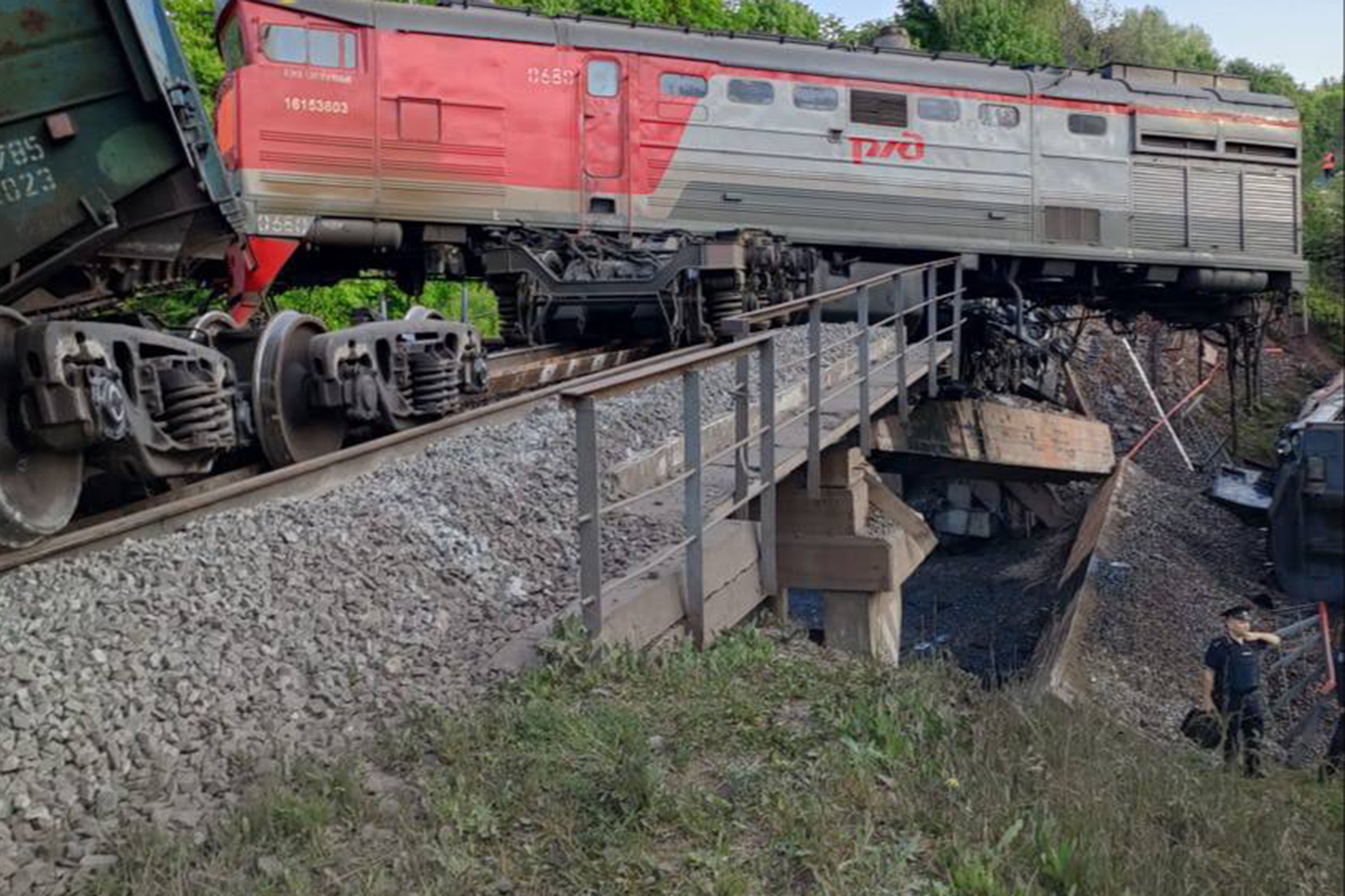В ночь на 1 июня в Выгоничском районе Брянской области автомобильный мост обрушился на железнодорожные пути, по которым двигался поезд № 86, следовавший по маршруту Климов – Москва. В результате аварии погибли семь человек. Позже об аналогичном происшествии на железной дороге в Курской области сообщил врио губернатора региона Александр Хинштейн. По данным Следственного комитета России, причиной падения мостов в обоих случаях стали их подрывы.
