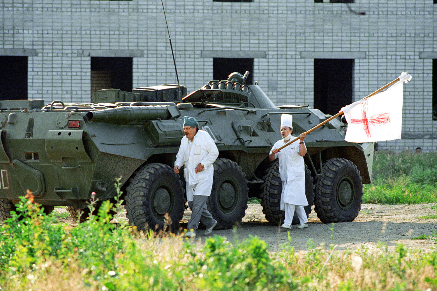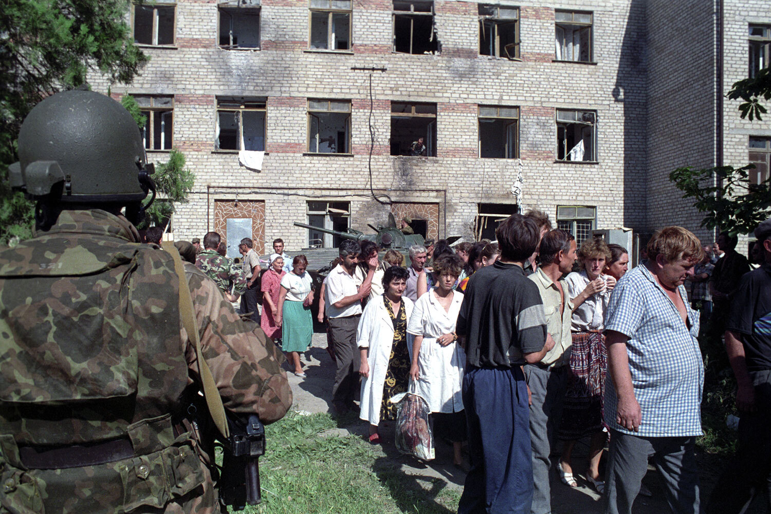 Сергей Величкин, Николай Малышев / ИТАР-ТАССПодозрительную колонну направили для проверки в Буденновск, после чего Басаев принял решение действовать по ситуации. Доехав до города, боевики открыли огонь по милицейскому кортежу и случайным прохожим, а также попытались захватить РОВД. Потерпев неудачу, они принялись атаковать административные здания и брать в заложники местных жителей, сгоняя их в центральную районную больницу.