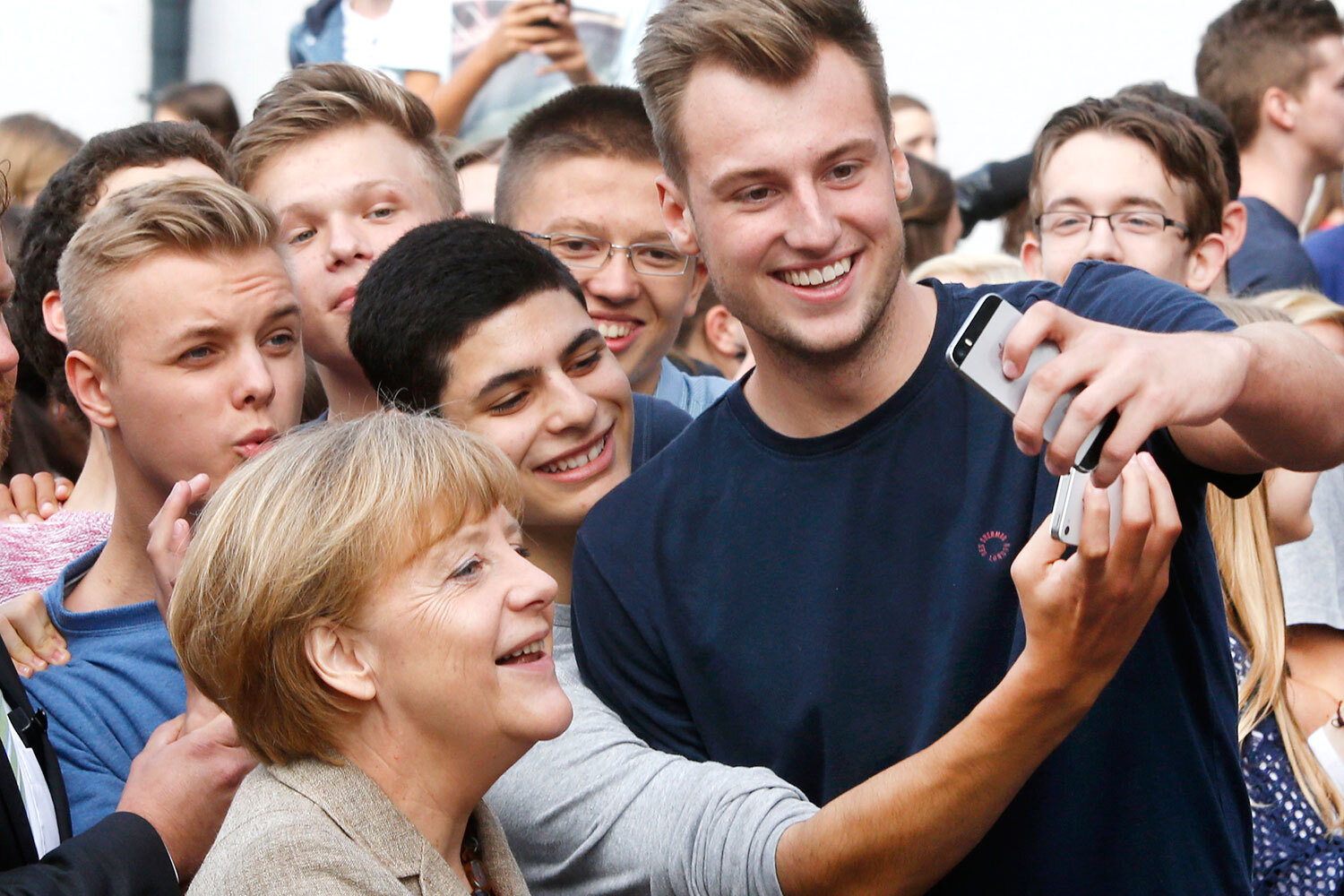 Михаил Климентьев / ТАССВ 2014 г. в США впервые прошла акция, посвященная селфи, то есть увлечению снимать самого себя на мобильный телефон. С тех пор праздник стал международным и ежегодно отмечается 21 июня, а фото на фронтальную камеру полюбились всем – от обычных пользователей до высокопоставленных лиц. Где и при каких обстоятельствах политики и бизнесмены делали автопортреты – в галерее «Ведомостей».