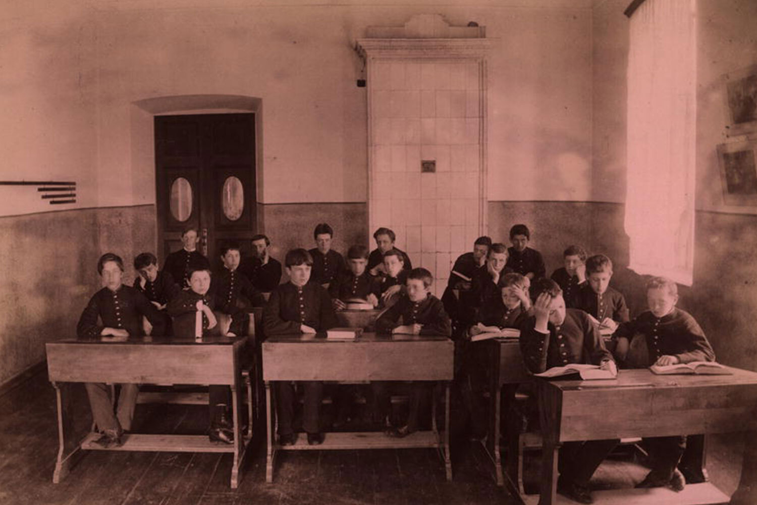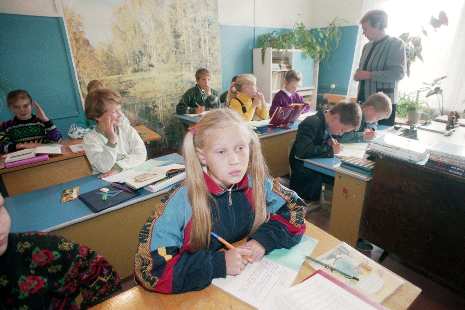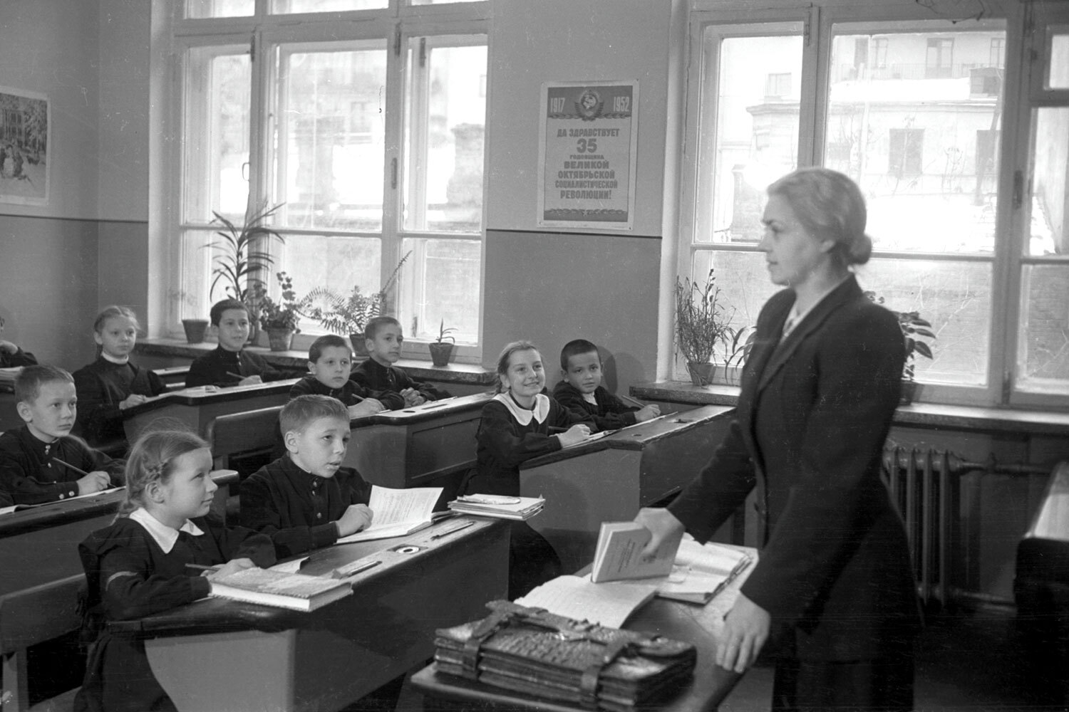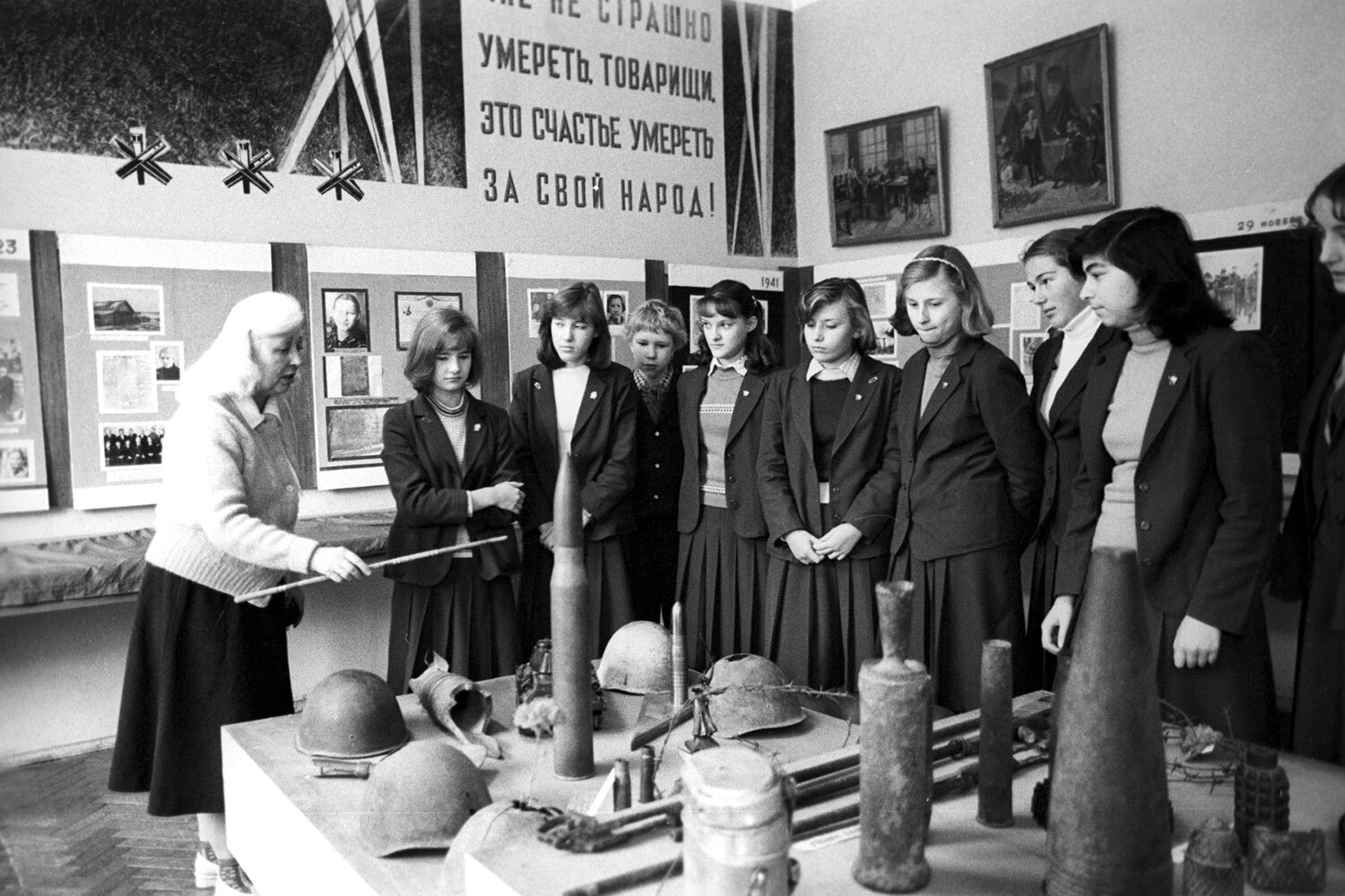 Михаил Озерский / РИА НовостиФорма вернулась в советские школы после Великой Отечественной войны. Произошло это в 1948-1949 гг., когда в СССР ввели всеобщее семилетнее образование. Мальчики носили серые гимнастерки, девочки – коричневые платья и фартуки. Школьницы впервые получили рекомендации относительно прически: в косички вплетали ленты под цвет фартуков. Из-за того, что мужской вариант формы дополняли фуражкой с козырьком, ремнем с пряжкой и темными полуботинками, школьники снова напоминали солдат. В 1954 г. к гимнастеркам добавили еще и кители. В первые годы из-за дороговизны на класс могли купить только один такой пиджак, но затем они стали популярны (на фото).