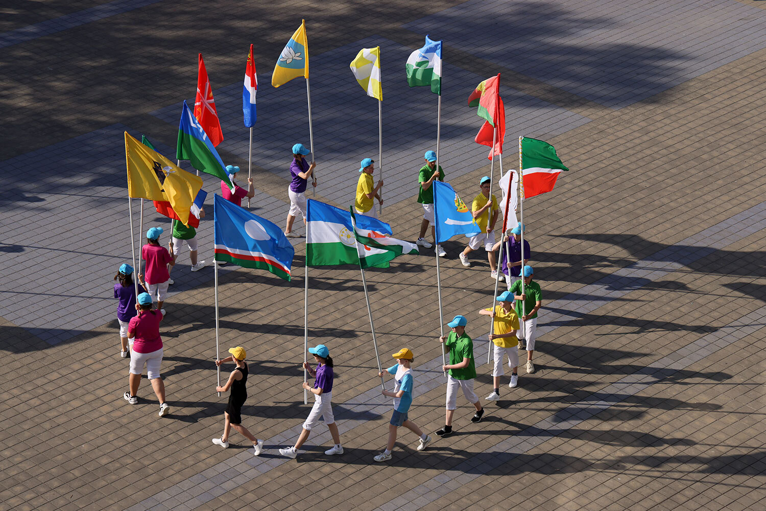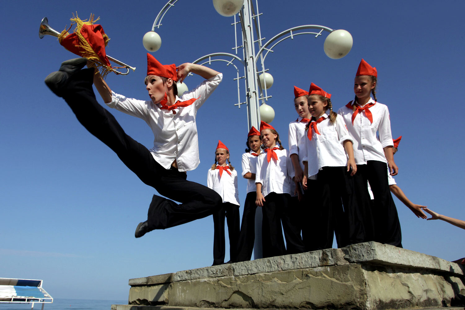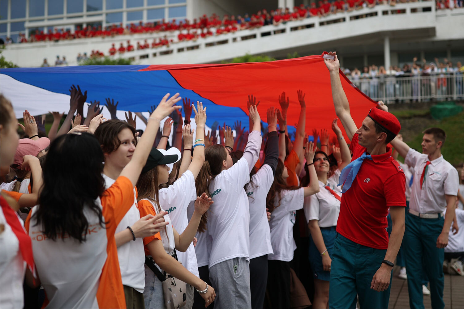ITAR-TASSГимном лагеря считается песня «Орлята учатся летать»: «Орлята учатся летать. / Им салютует шум прибоя, / В глазах их – небо голубое… / Ничем орлят не испугать, / Орлята учатся летать». Песню написали композитор Александра Пахмутова и поэт Николай Добронравов в 1965 г. В 1990-х ее переосмыслили музыканты из группы «Любэ». Они пели про героев новой России: «Орлята учатся летать. / Прости, страна, забавы их, / Прости, народ российский. / Птенцов окраин городских / Ждет дальний путь армейский. / Орлята учатся летать».