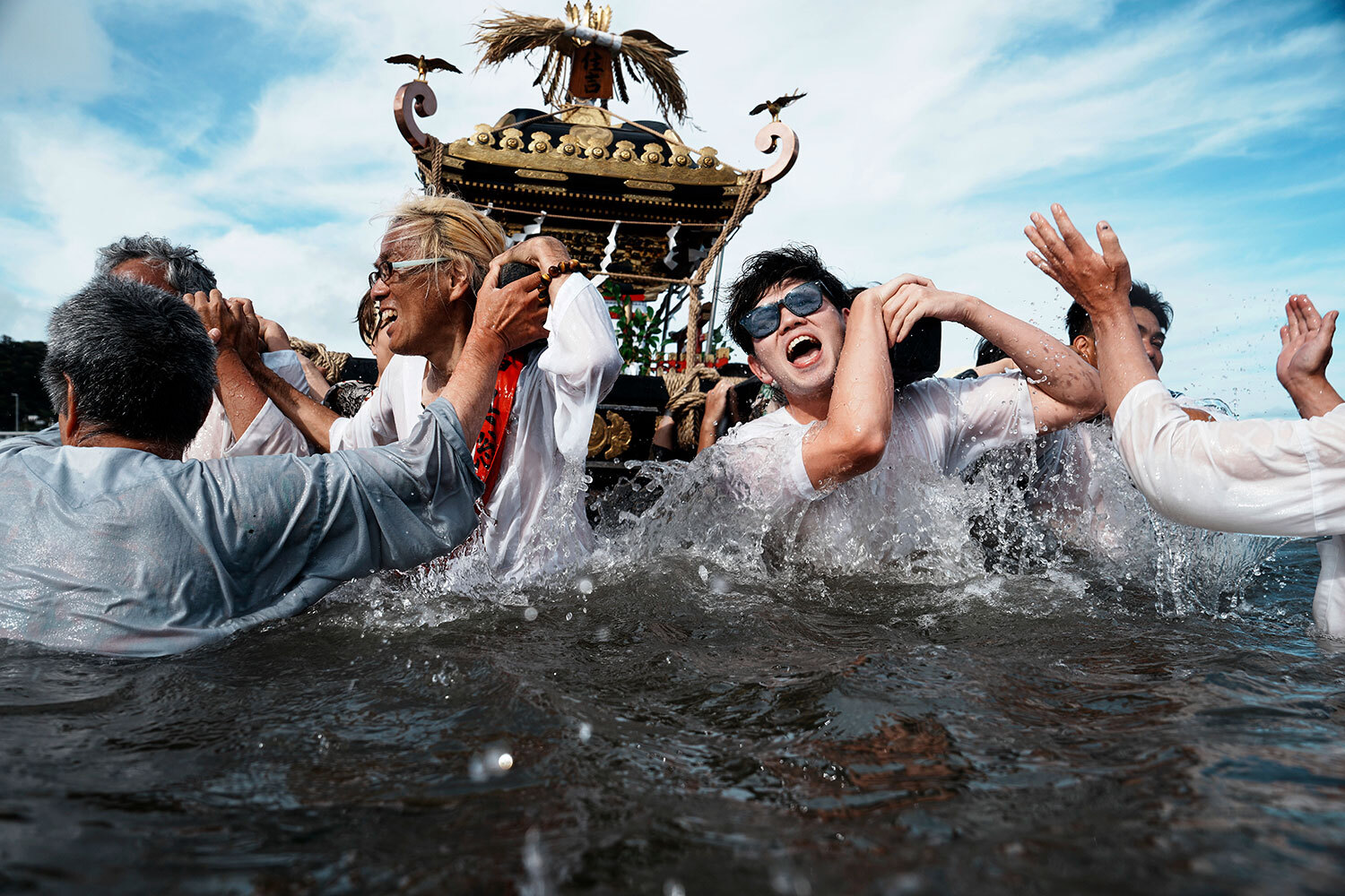 28 июля 2025 г. Обряд очищения на фестивале святилища Курихама Сумиёси в Курихаме, городе Йокосука, к югу от Токио.