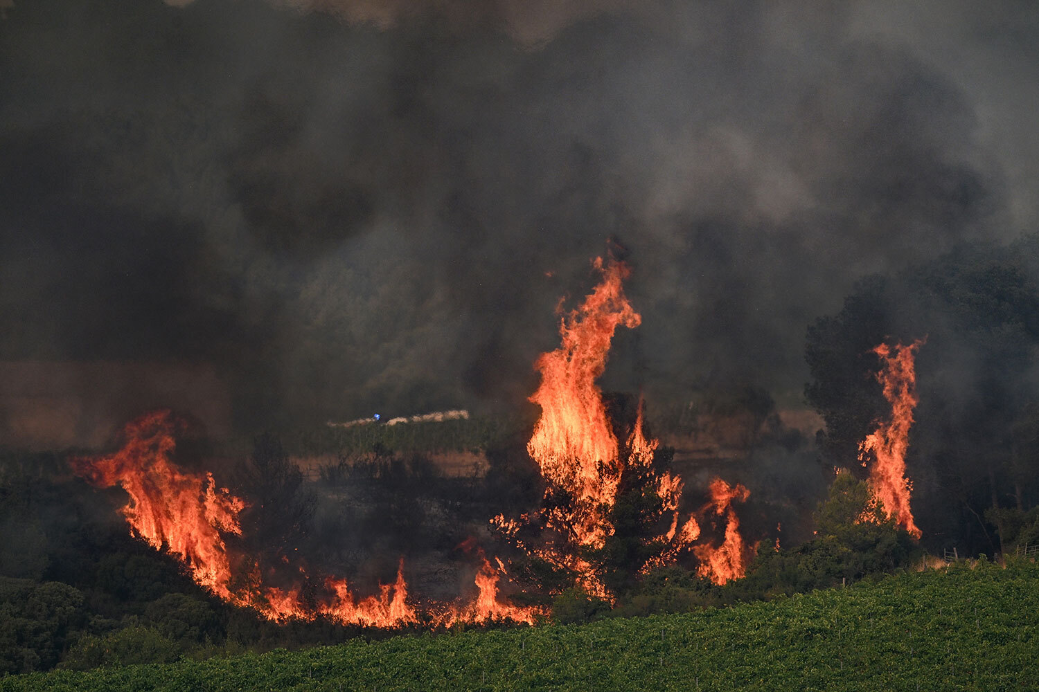 Пожар вспыхнул 5 августа возле деревни Рибо в департаменте Од, а затем охватил холмы Корбьер, известные своими виноградниками и средневековыми деревнями.