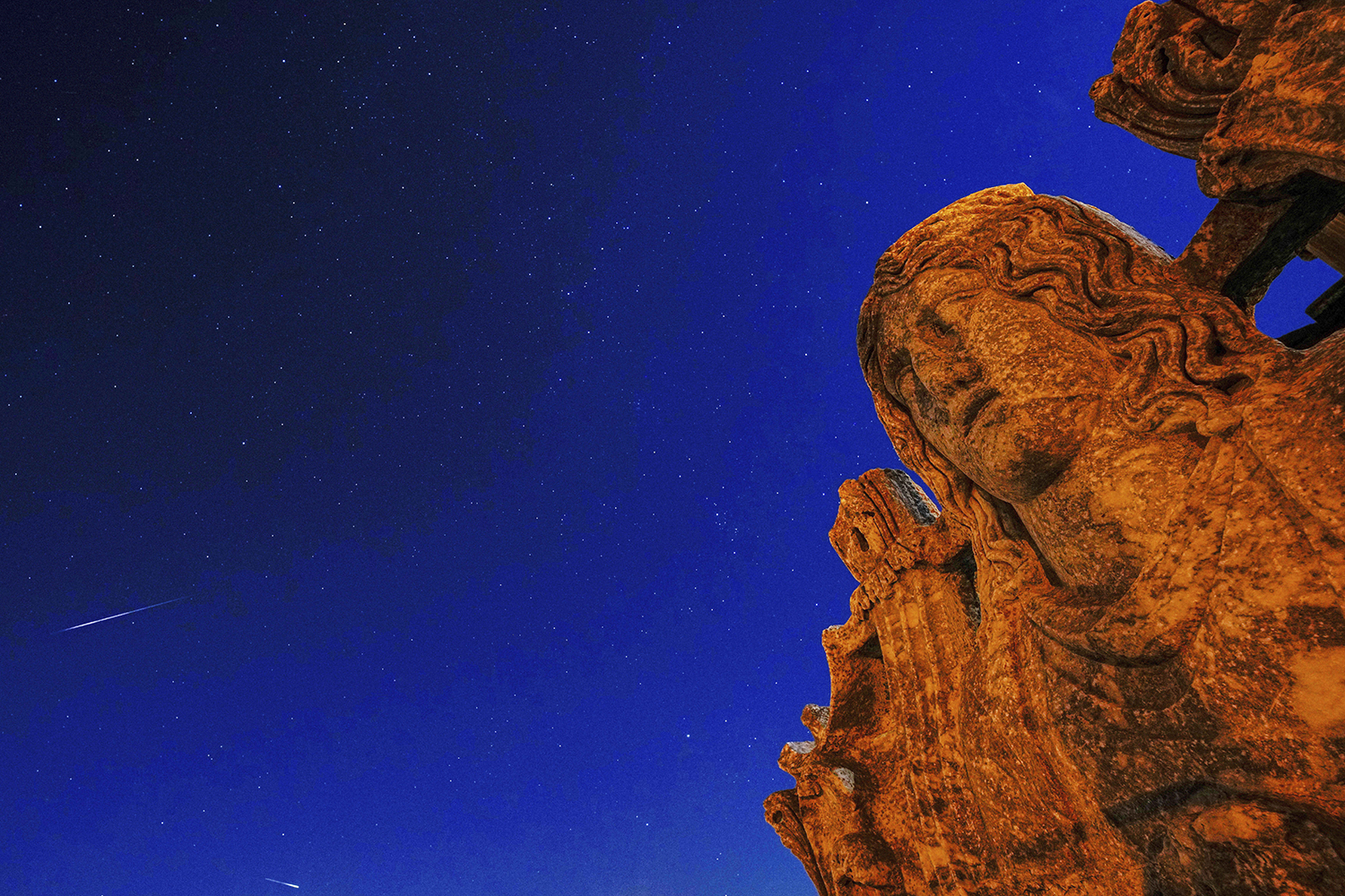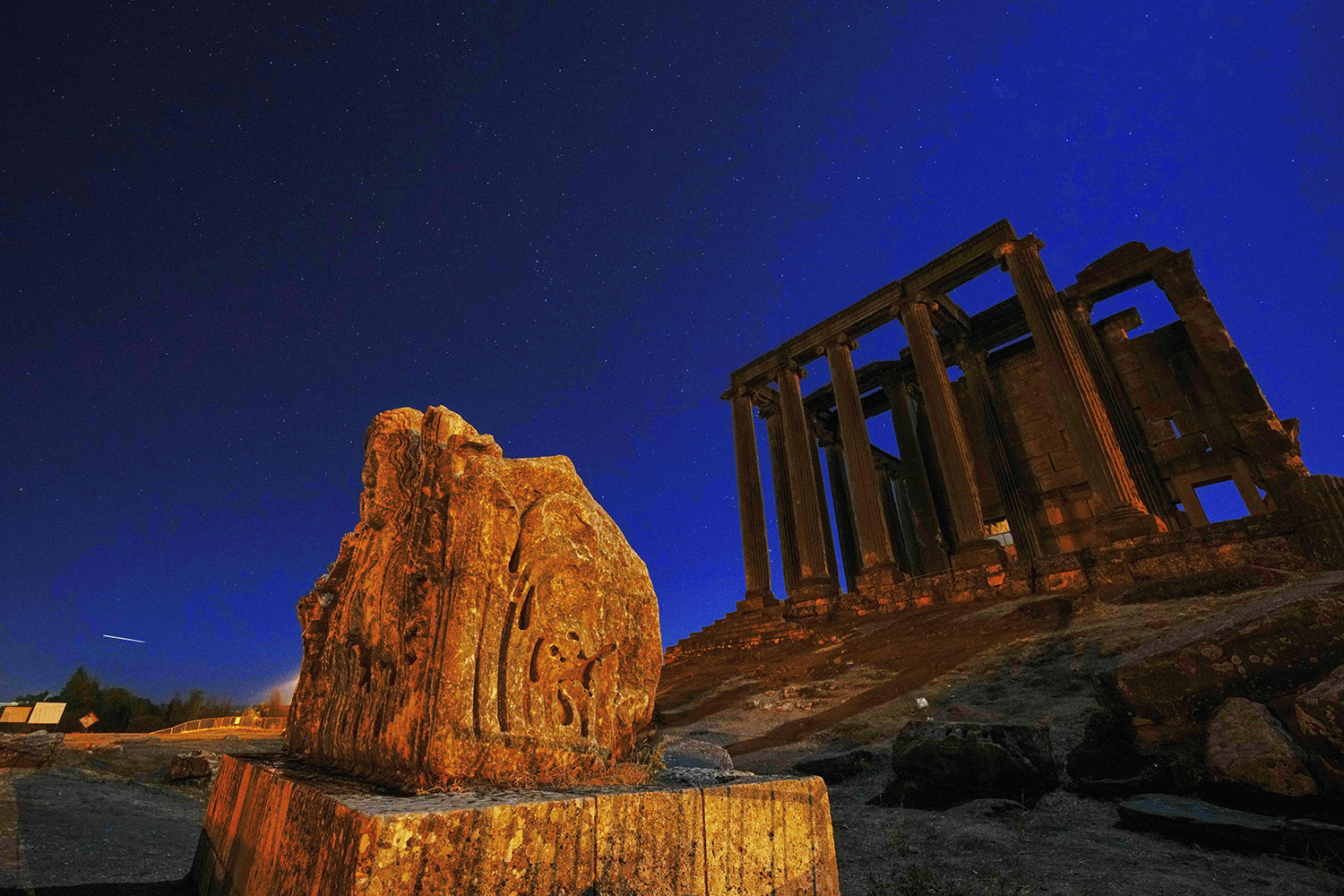 На фото: храм Зевса в турецком городе Айзаной на фоне звездного неба.