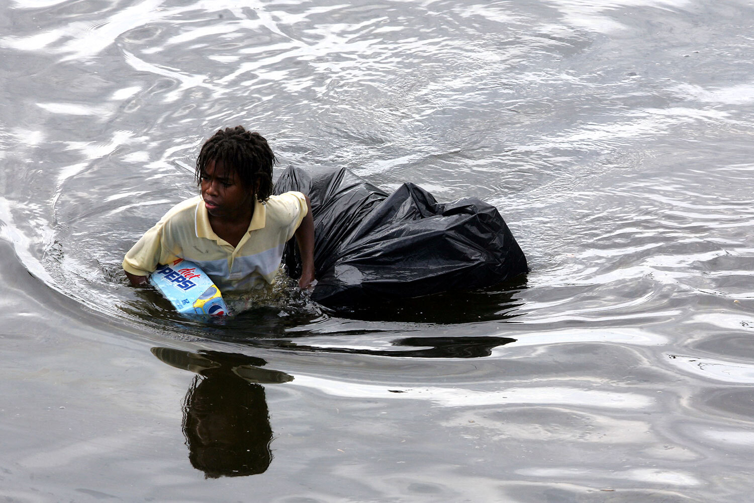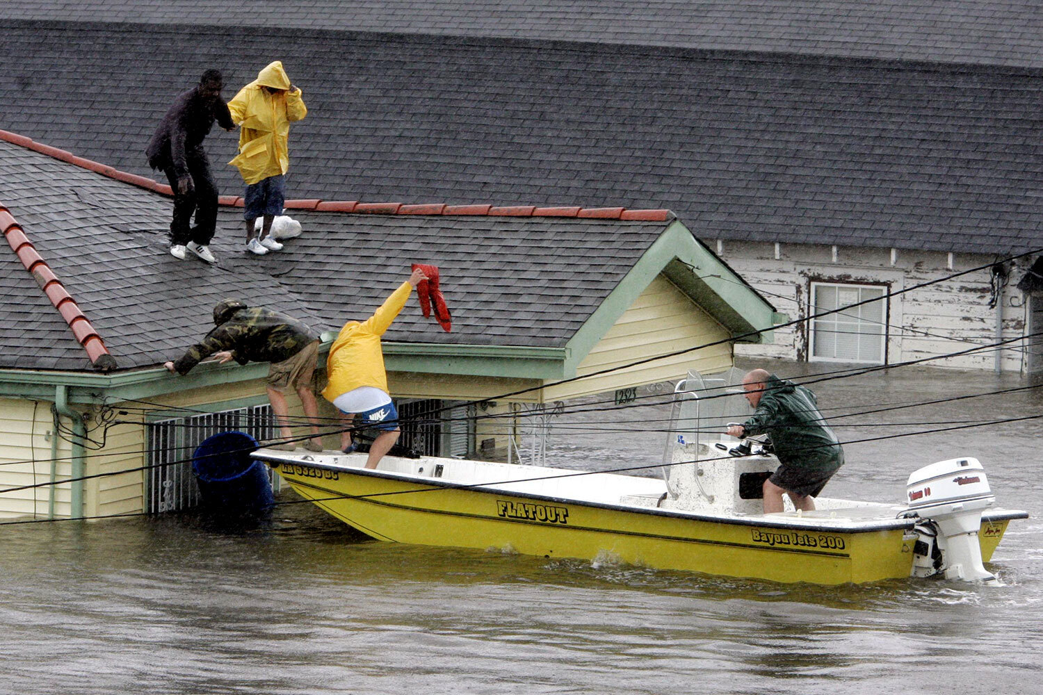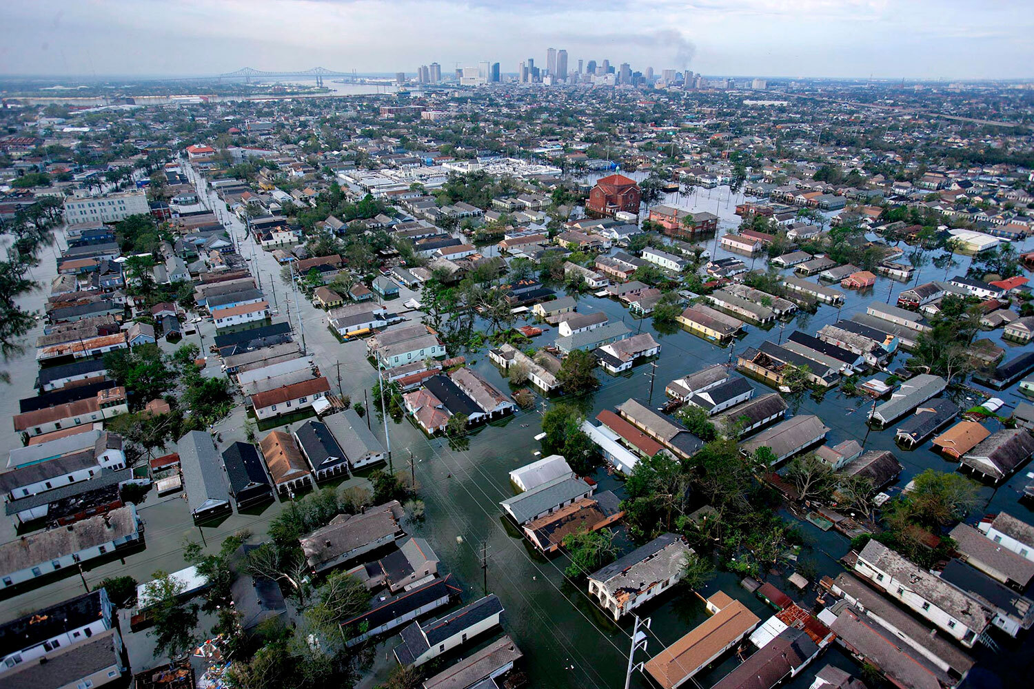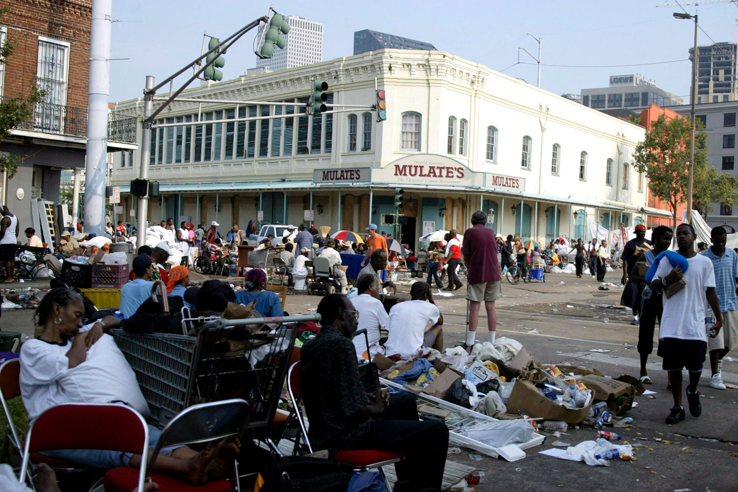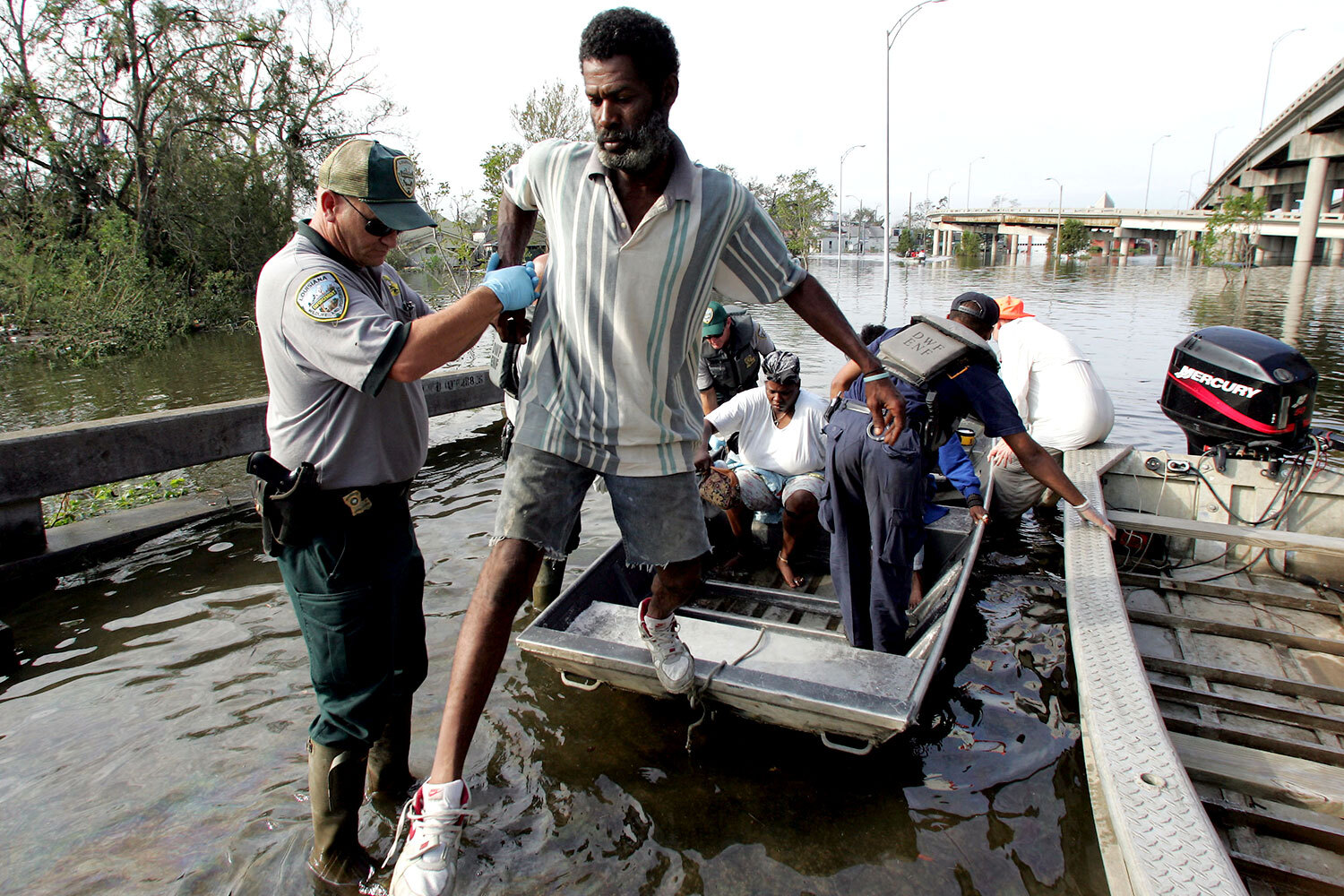 EPA / TASSВ тот же день мэр Нового Орлеана объявил об обязательной эвакуации населения. Примерно миллион человек покинули город и близлежащие территории. Однако около 150 000 жителей, преимущественно из бедных районов, либо отказались уезжать, либо не имели такой возможности. Утром 29 августа ураган «Катрина» достиг Луизианы. Для тех, кто остался в Новом Орлеане, власти оборудовали убежище в крытом стадионе «Супердоум». Несмотря на снижение скорости ветра до 57 м/с, первый удар стихии был настолько сильным, что у арены начала протекать крыша, получившая повреждения.
