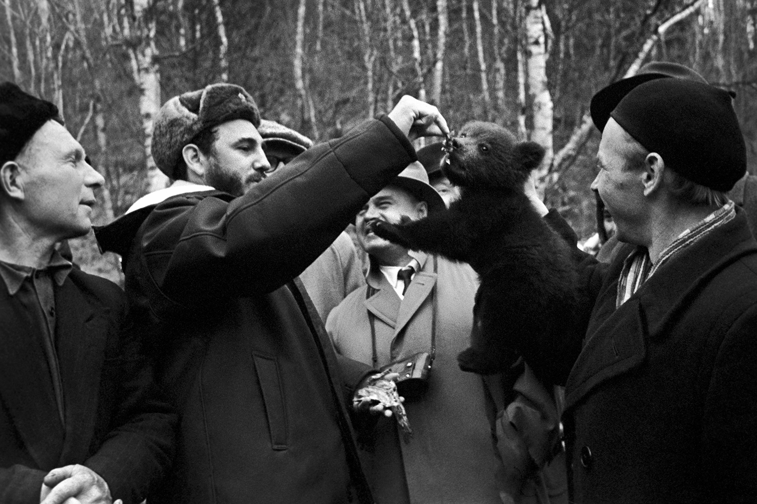 В мае 1963 г. до Байкала добрался кубинский лидер Фидель Кастро, который прибыл в СССР с дружественным визитом. Из Иркутска на «Ракете» он уплыл в Листвянку, где посетил музей Лимнологического института Сибирского отделения АН СССР, который проводит комплексные исследования самого глубокого озера в мире. Программа национального лидера, помимо этого, включала рыбалку – и не только. «Рыбак Александр Рудых приглашает к костру, на раскаленных углях которого жарится только что выловленный хариус. Здесь, у костра, рыбаки дарят Фиделю сеть для ловли рыбы. Там же, на берегу Байкала, Фидель Кастро встретился с молодым охотником… Юноша подарил Фиделю двухмесячного медвежонка, пойманного им в тайге во время последней охоты», – писала газета «Восточно-Сибирская правда».