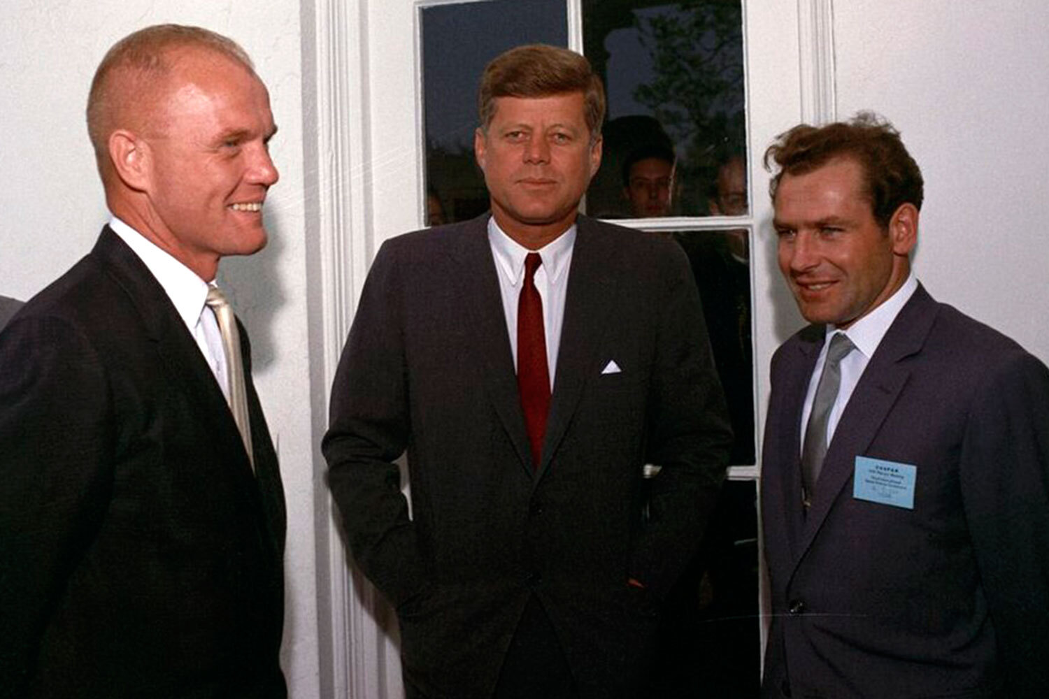 На фото: астронавт Джон Гленн, президент США Джон Кеннеди и Герман Титов в Белом доме, 1962 г.