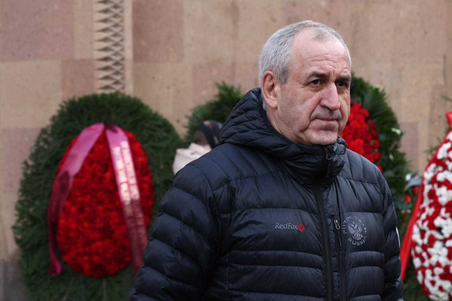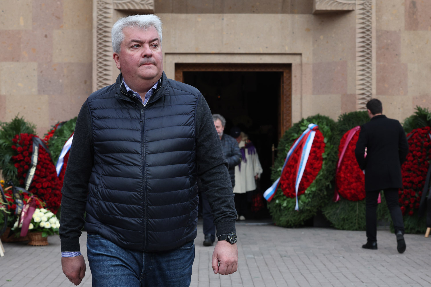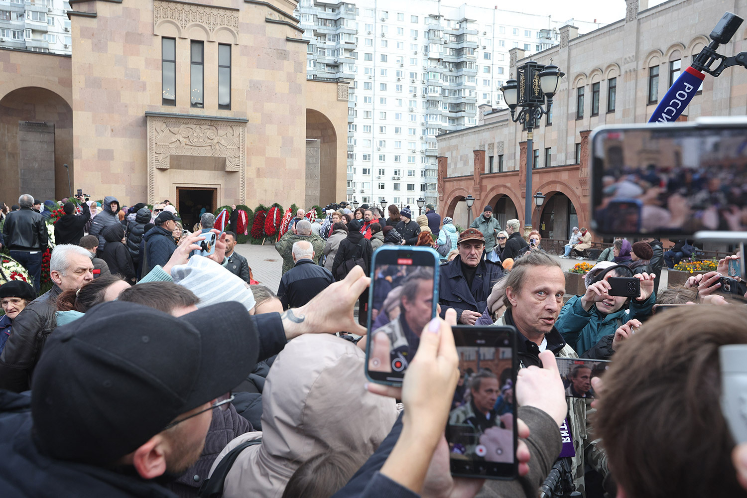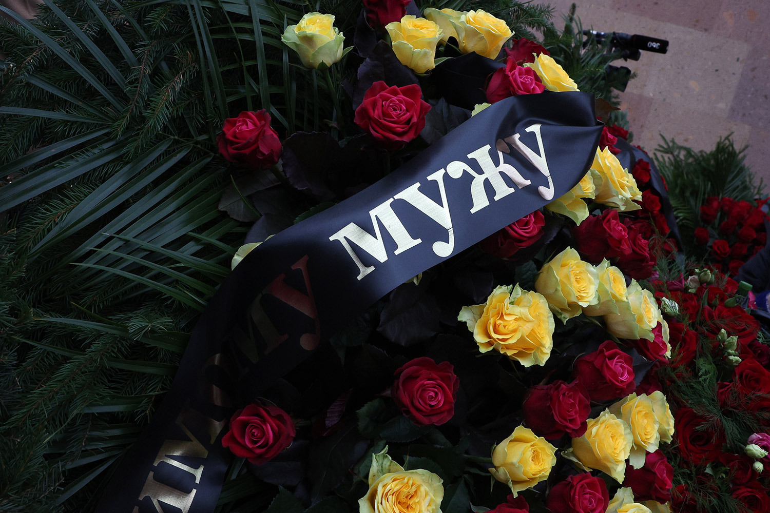 Венки на церемонии прощания с режиссером и телеведущим Тиграном Кеосаяном
