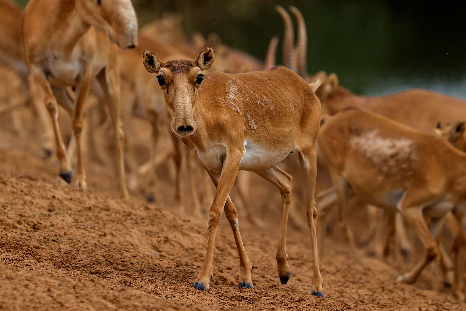 Эрик Романенко / ТАСССайгак – реликтовая антилопа – обитает в степях, расположенных вдоль реки Урал на границе с Казахстаном, где находится 95% популяции. С конца 1990-х, когда в России насчитывалось около 300 000 особей, численность парнокопытных сократилась критически – до 3500 в 2015 г. На данный момент, благодаря мерам охраны, она несколько возросла (8500 особей). Ключевыми факторами, влияющими на популяцию, являются засухи, которые приводят к сокращению пастбищ, а также вспышки ящура.