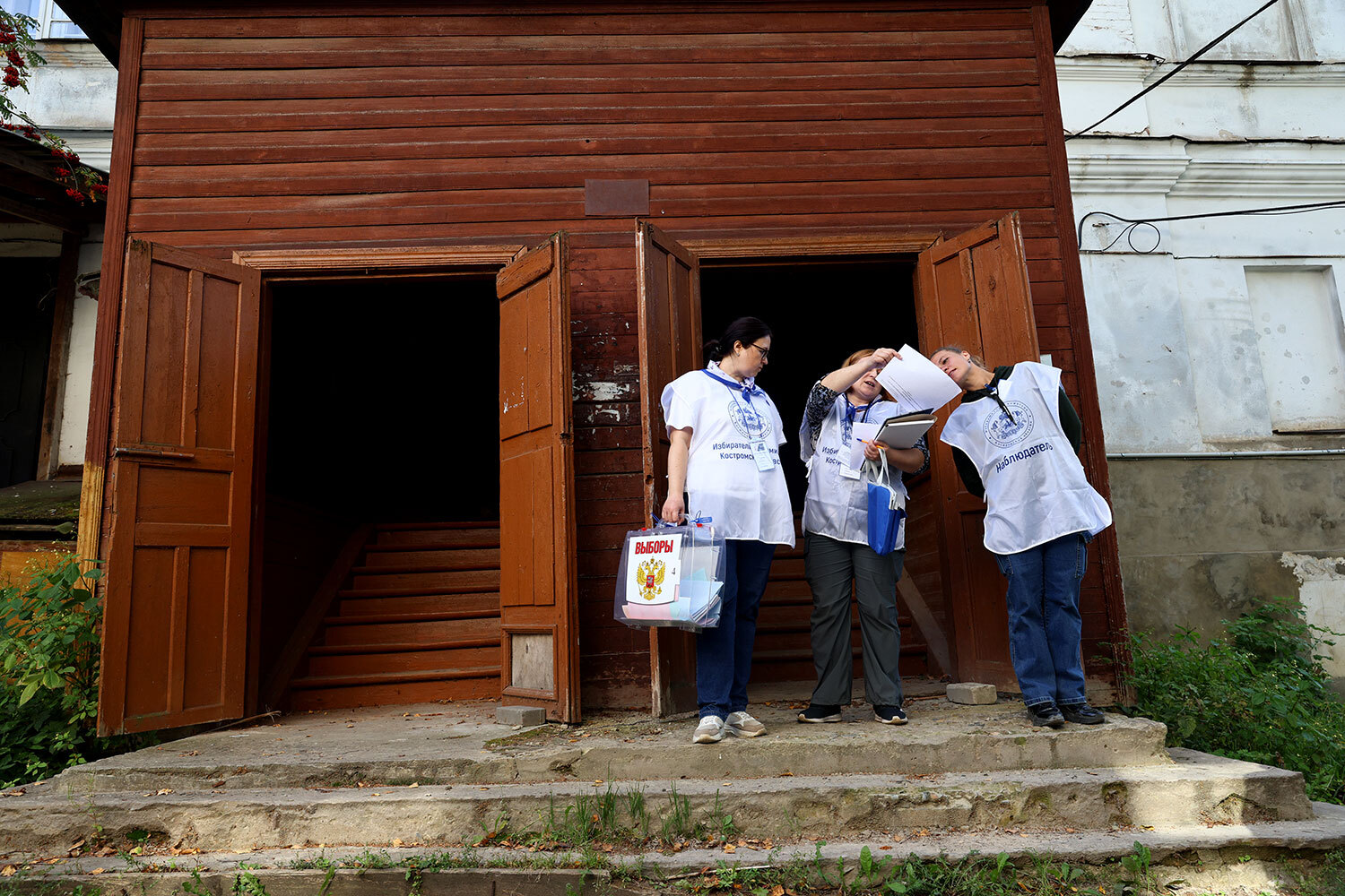 13 сентября 2025 г. Сотрудники участковой избирательной комиссии во время надомного голосования в центре Костромы.