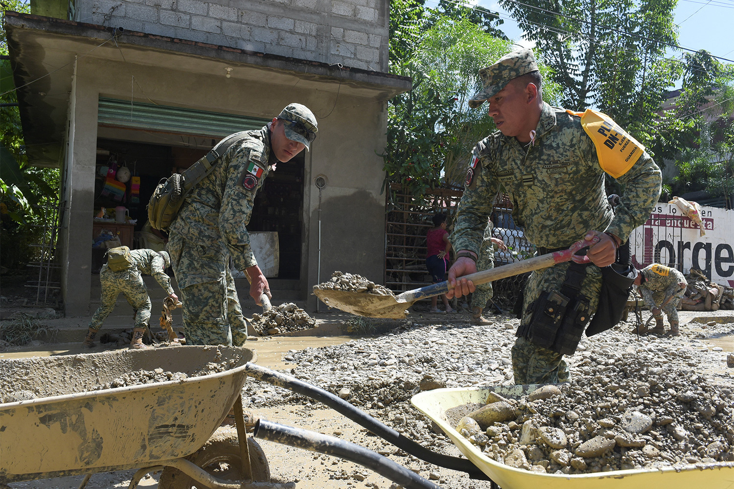EPA / TASSПо данным СМИ, некоторые населенные пункты не смогли предупредить про возможные оползни и наводнения, например, прибрежный город нефтяников Поса-Рика. Его жители сообщают СМИ про разрушенные здания и автомобили, которые потоками воды закинуло на здания и крыши. Расчищать улицы им помогают службы спасения. Например, минобороны Мексики направило 5400 солдат и офицеров для проведения эвакуации и устранения последствий наводнения.