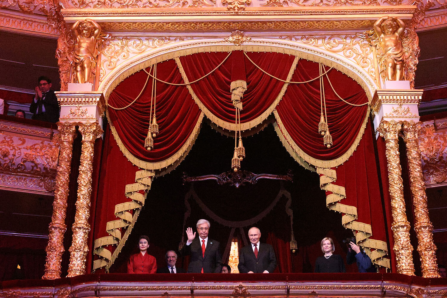 12 ноября 2025 г. Президент России Владимир Путин с казахстанским коллегой Касым-Жомартом Токаевым на гала-концерте мастеров искусств Казахстана в Большом театре.