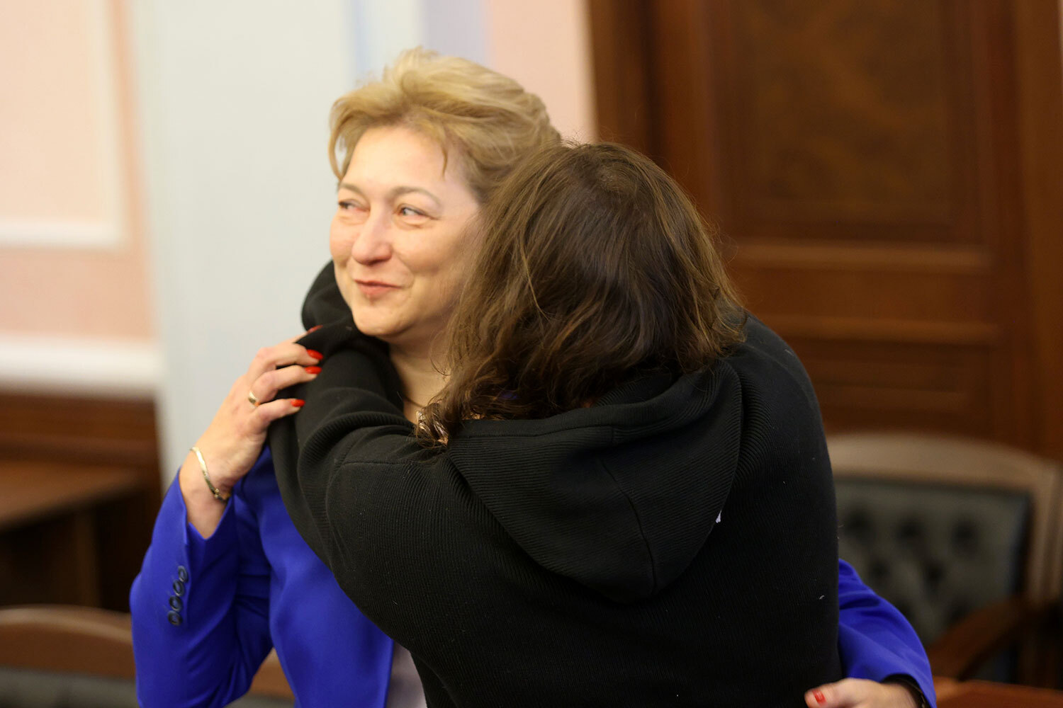 16 декабря 2025 г. Полина Лурье и ее адвокат Светлана Свириденко (слева) после решения Верховного суда, подтвердившего ее право собственности на квартиру, приобретенную у певицы Ларисы Долиной.