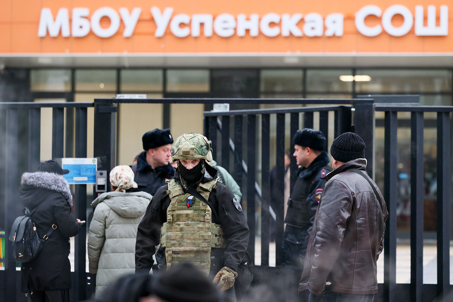 16 декабря 2025 г. Сотрудники полиции у здания школы в подмосковном Одинцове, где девятиклассник напал на учащихся с ножом.