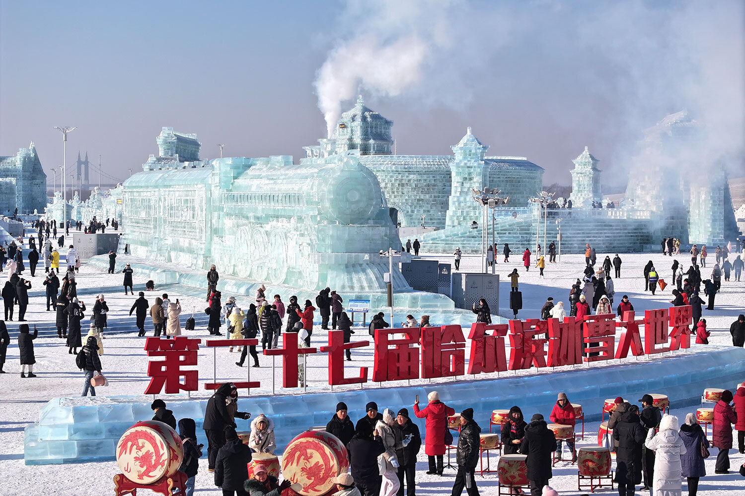 17 декабря 2025 г. Посетители самого большого в мире тематического парка льда и снега в Харбине, Китай.