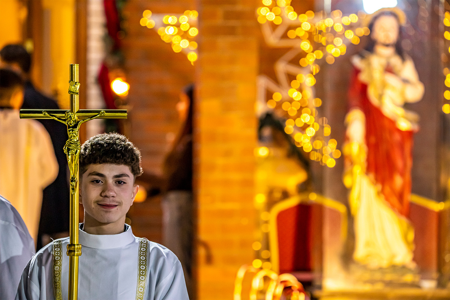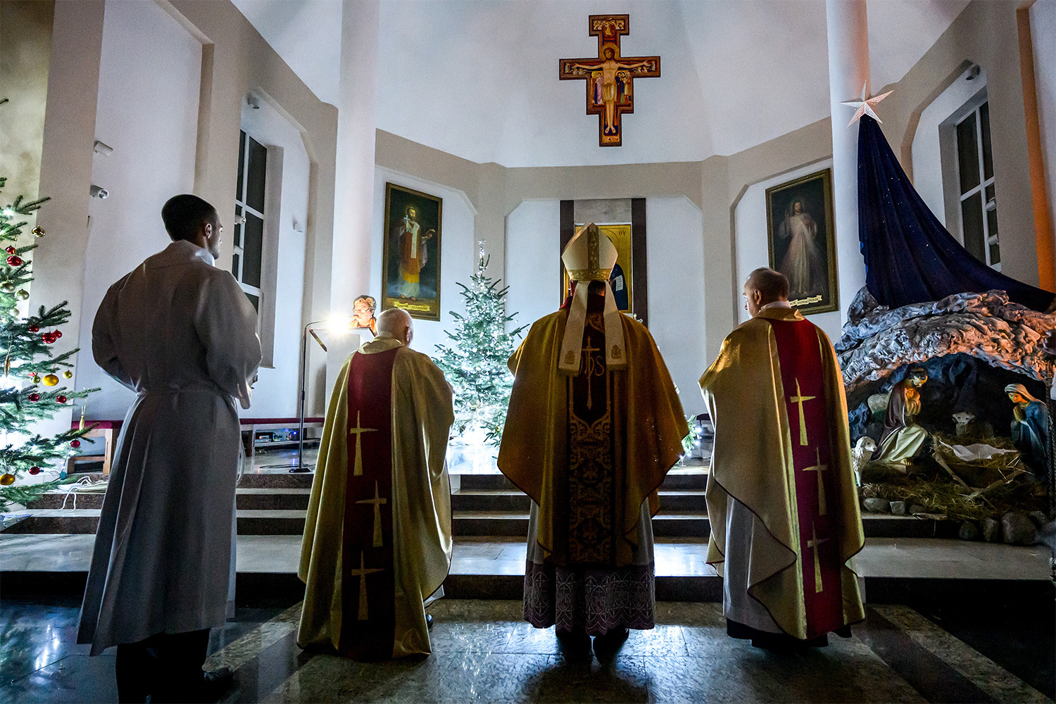Рождественская служба в римско-католическом храме Святого Адальберта в Калининграде, Россия.
