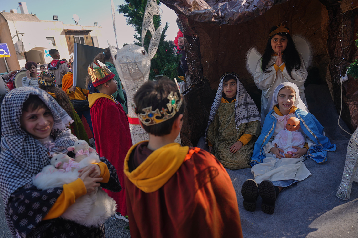 Подростки воссоздали сцену рождения Иисуса Христа в пещере (вертепе) в Вифлееме.