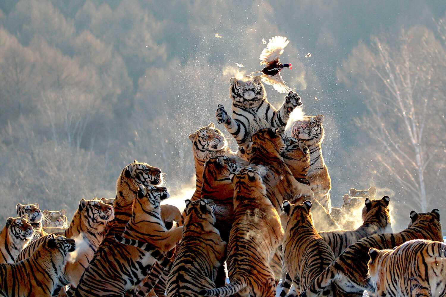 24 декабря 2025 г. Сибирские тигры в парке Хэндаохэцзи, Китай.