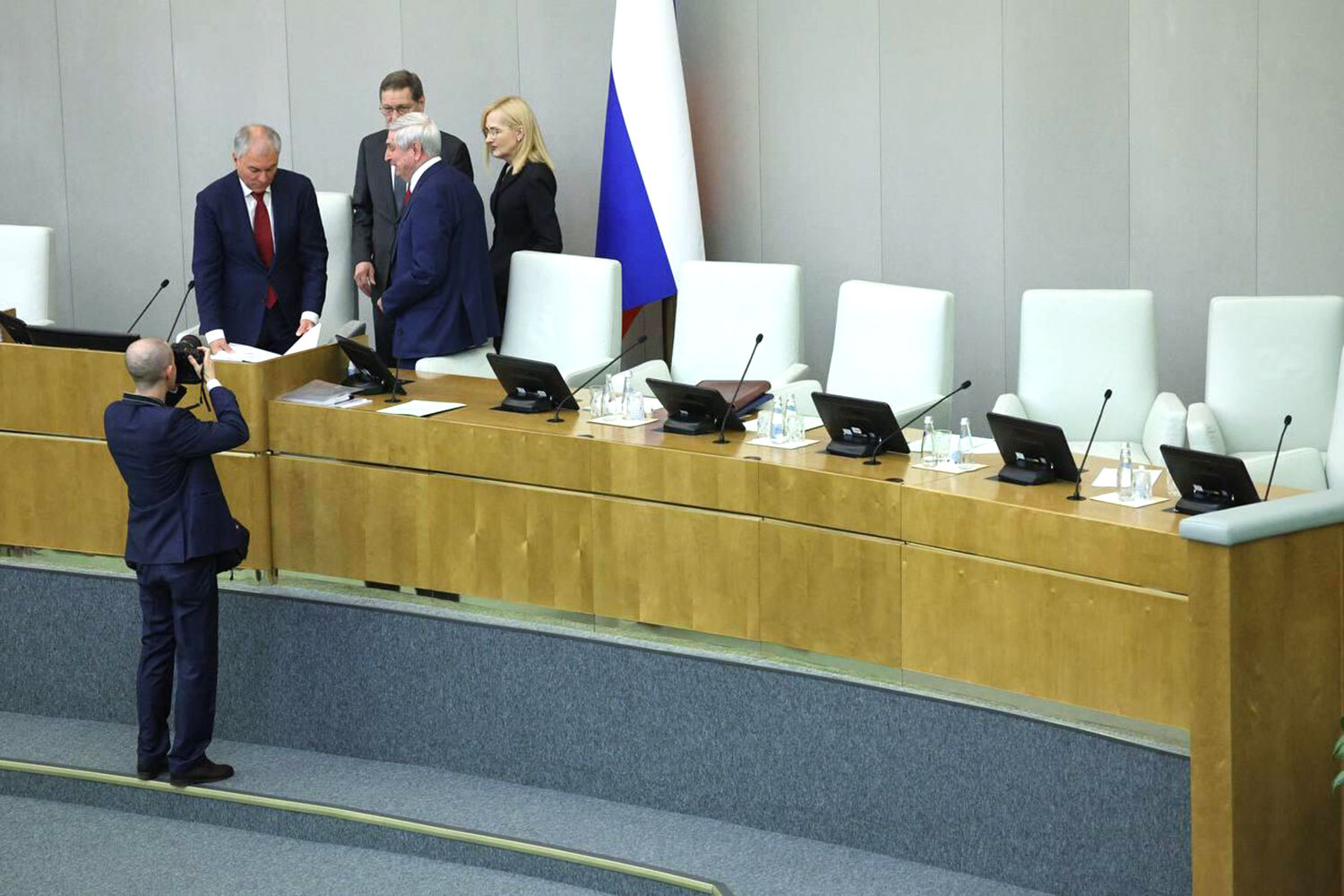23 декабря 2025 г. Спикер Госдумы Вячеслав Володин со своими заместителями – Александром Жуковым, Иваном Мельниковым и Ириной Яровой.