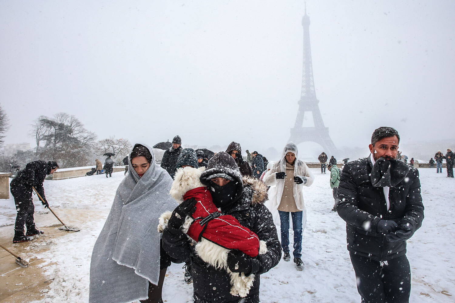 Zuma / TASSВо Франции снегопад, пик которого пришелся на 7 января, вызвал транспортный коллапс. Больше всего от него пострадал Париж, где, по подсчетам Sytadin, пробки растянулись на 950 км. Многие туристы и горожане оставили автомобили и передвигались пешком (на фото).