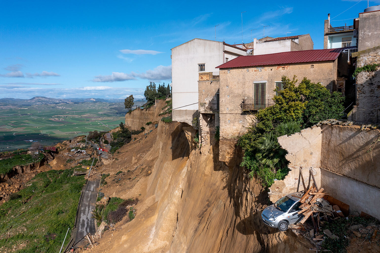 Оползень протяженностью 4 км в сицилийском городе Нишеми, Италия.