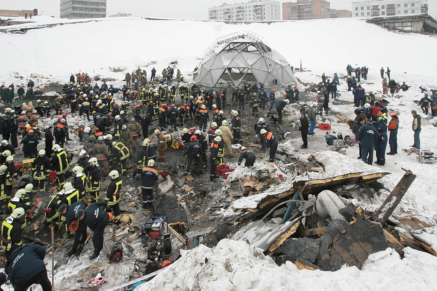 Марина Лысцева / ТАССПод завалами погибли 68 граждан России, Грузии, Азербайджана, Таджикистана и Узбекистана, которые работали на рынке. Еще 33 человека получили травмы различной степени тяжести. В разборе рухнувшей конструкции были задействованы все поисково-спасательные отряды Москвы, специалисты МЧС, Мособлспаса, а также представители других министерств и ведомств. Всего – почти 1000 человек.