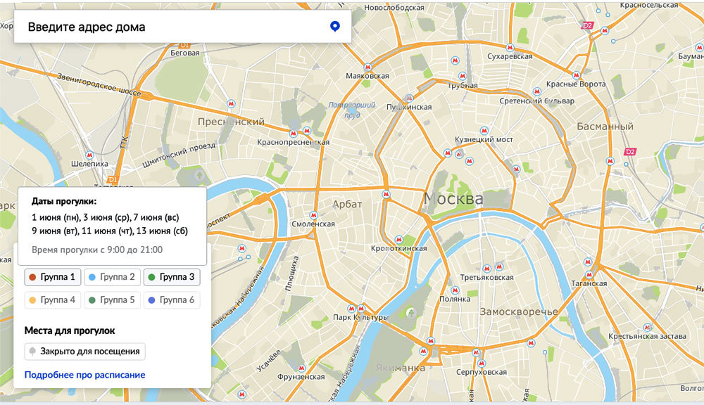 Власти Москвы запустили интерактивную карту с графиком прогулок