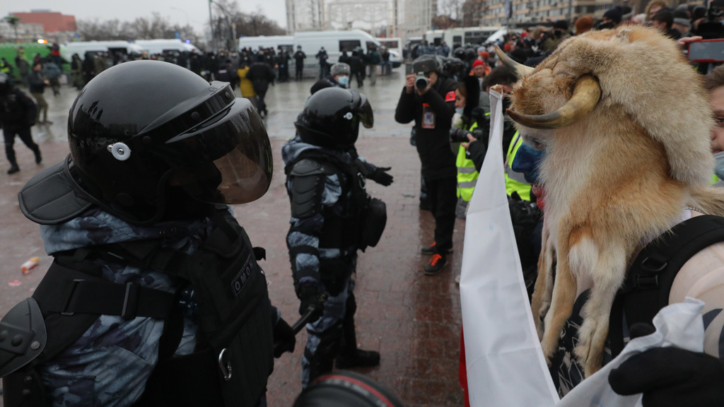 Суд арестовал первого обвиняемого в нападении на силовика на акции 23 января