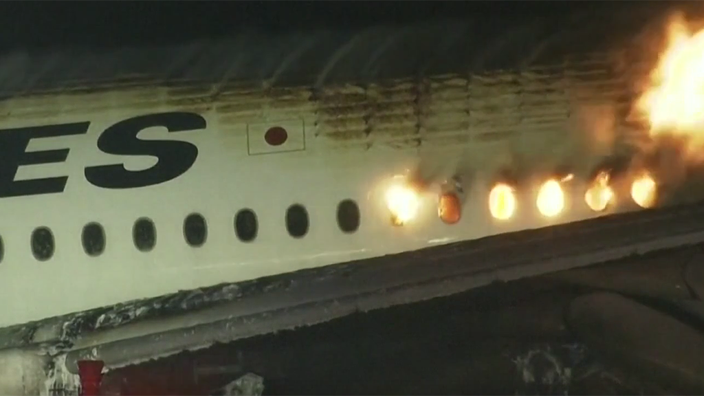 В аэропорту Токио загорелся пассажирский самолет