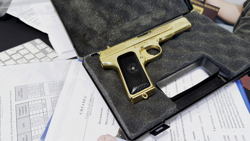 ФСБ показала золотой пистолет и машины задержанных чиновников в КЧР