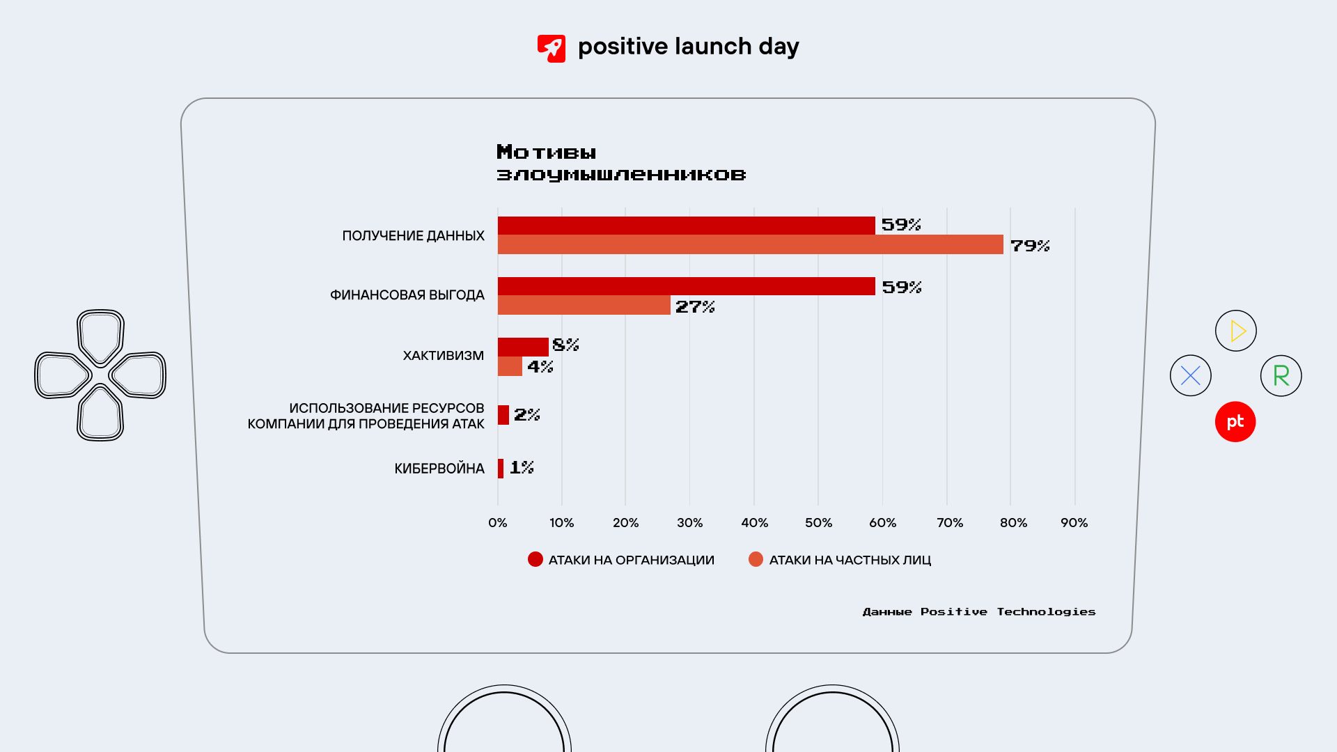 Превалирующее большинство киберпреступников нацелены на получение данных компании. Доля таких атак снизилась, но она по-прежнему крайне высока: как указывают в Positive Technologies, если в 2020 году на такие атаки приходилось 65% от всех атак злоумышленников на компании, то в 2021 году (II квартал) – уже 59%.