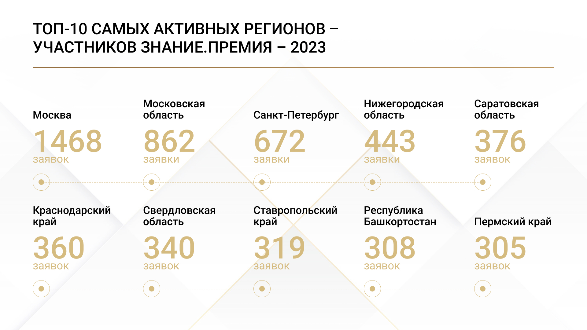 В 2023-2024 гг. премия проходит уже в третий раз. С каждым новым сезоном она становится все более востребованной и демонстрирует растущий престиж миссии просветителя. В прошлом году торжественная церемония награждения лауреатов проходила в Государственном Кремлевском дворце. Премия тогда собрала более 6000 соискателей, в то время как в этом году получено уже свыше 13 тысяч заявок из всех 89 регионов России. Лидерами по числу претендентов в 2023 г. стали Москва, Московская область и Санкт-Петербург. Также в топ-10 вошли Нижегородская и Саратовская области, Краснодарский край, Свердловская область, Ставропольский край и другие регионы.
