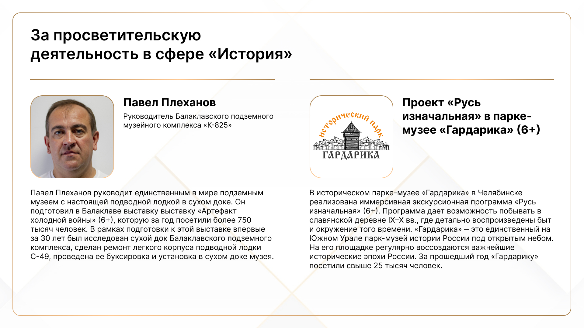 23 ноября номинанты преодолели важный этап соревновательной «гонки» – очную защиту своей просветительской деятельности. Она прошла в рамках Международной выставки-форума «Россия» на ВДНХ (0+).