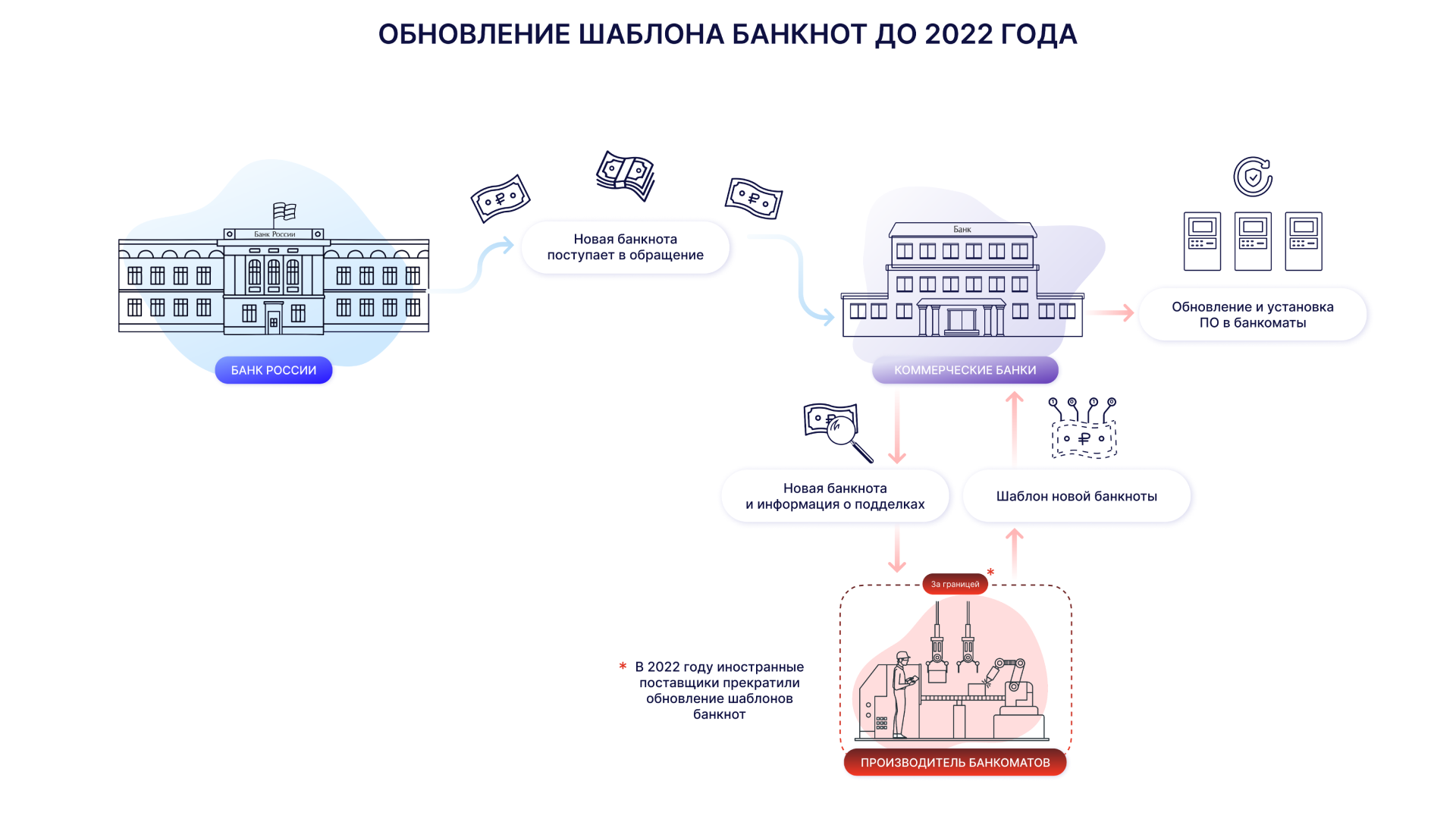 Когда обновления остановились, банки попросили Центробанк отложить запланированный выпуск банкнот нового образца, а сами стали переходить на оборудование корейских и китайских производителей, которые пока еще работают на отечественном рынке и обновляют ПО банкоматов собственного производства.